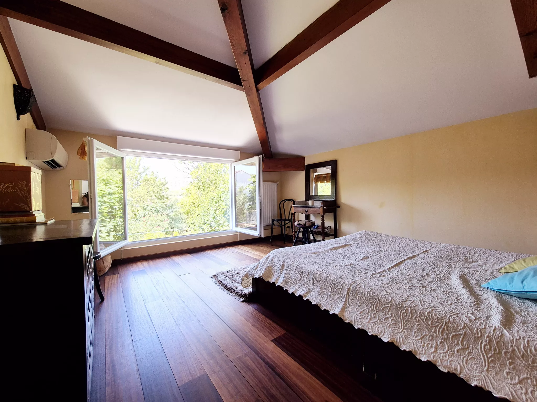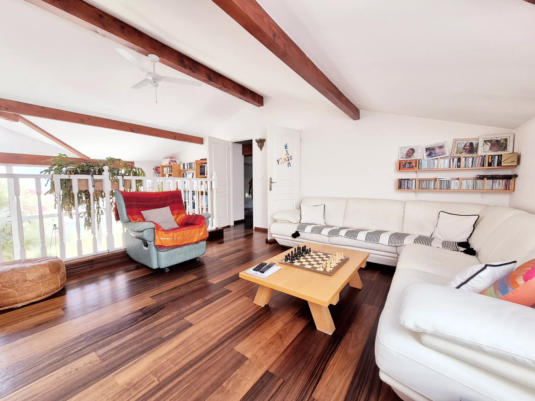 À l'étage, un palier dessert quatre chambres climatisées, une salle d'eau avec WC ainsi qu'une grande mezzanine pouvant accueillir un coin bureau et un salon.