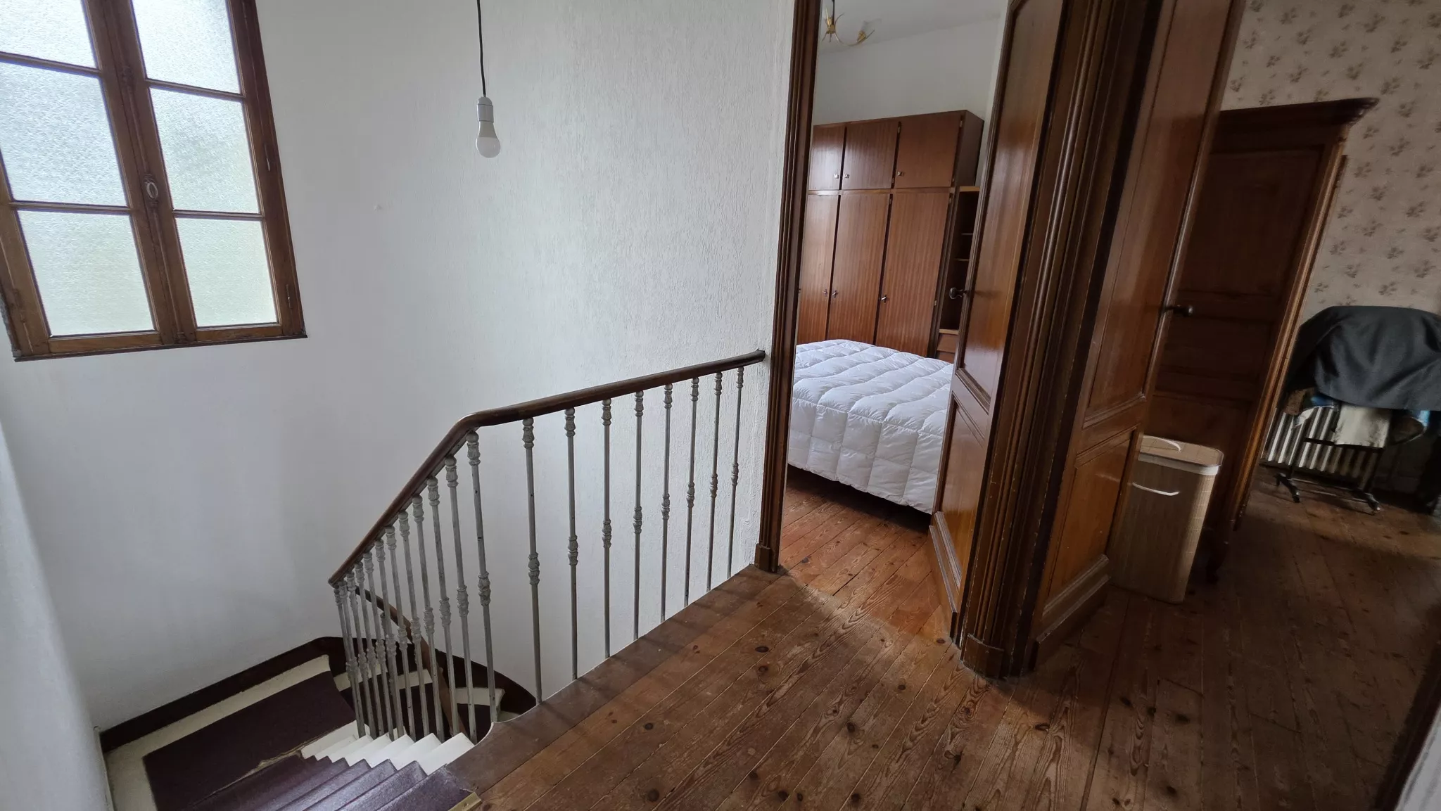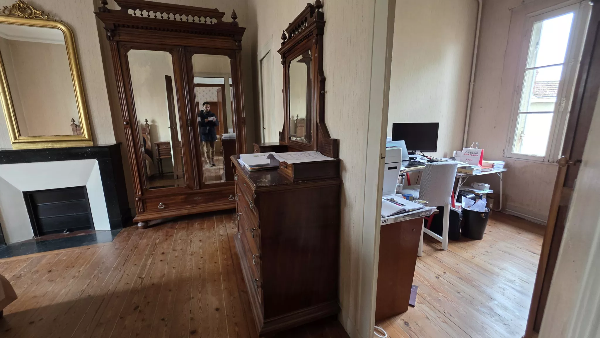 À l'étage, vous découvrirez quatre belles pièces avec cheminées, une salle de bains et des WC, offrant la possibilité d'aménager 4 à 5 chambres au total.