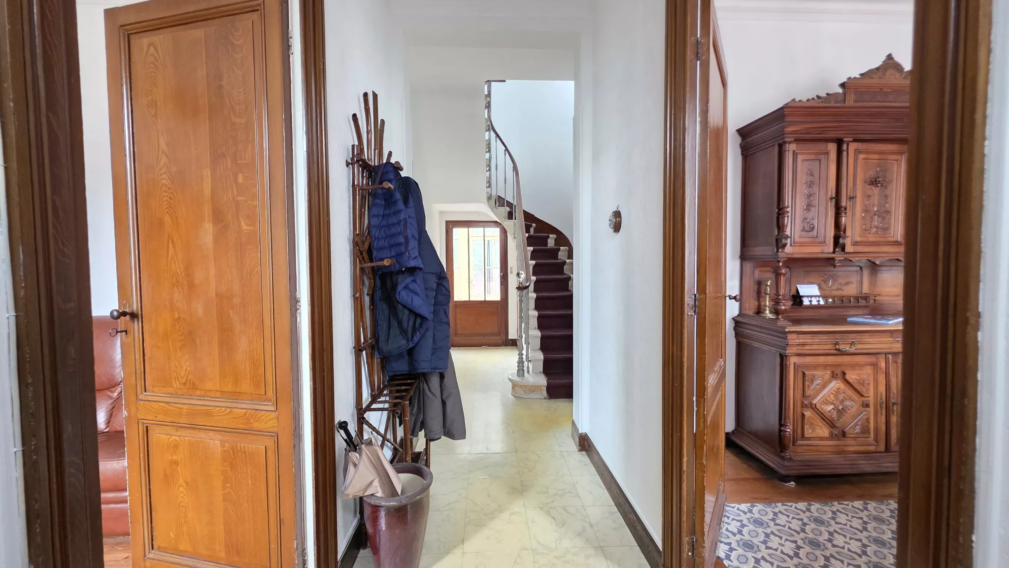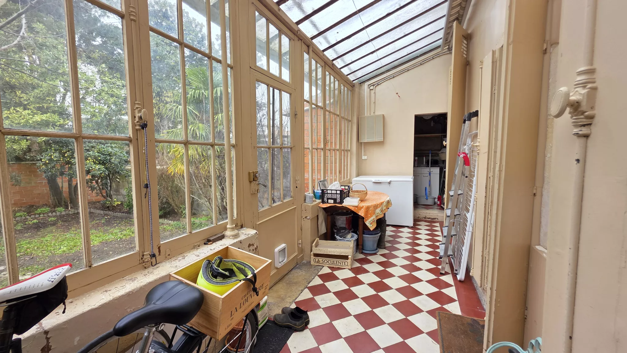 Le rez-de-chaussée offre aujourd'hui quatre grandes pièces, laissant entrevoir un fort potentiel de transformation : les espaces peuvent aisément être ouverts pour créer un superbe espace de vie traversant, convivial et lumineux, idéal pour une vie familiale moderne. Cet ensemble s'ouvre sur une véranda pleine de caractère, puis sur un jardin agréable et arboré.