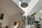 Au coeur de la maison, l'escalier constitue une colonne vertébrale élégante. Des percements et châssis intérieurs orchestrent des jeux de transparence, multipliant les perspectives entre les niveaux. L'étage central réunit un salon-bibliothèque modulable et trois chambres confortables, desservies par une salle d'eau familiale aux finitions soignées, où lignes contemporaines et détails patrimoniaux trouvent un bel équilibre.