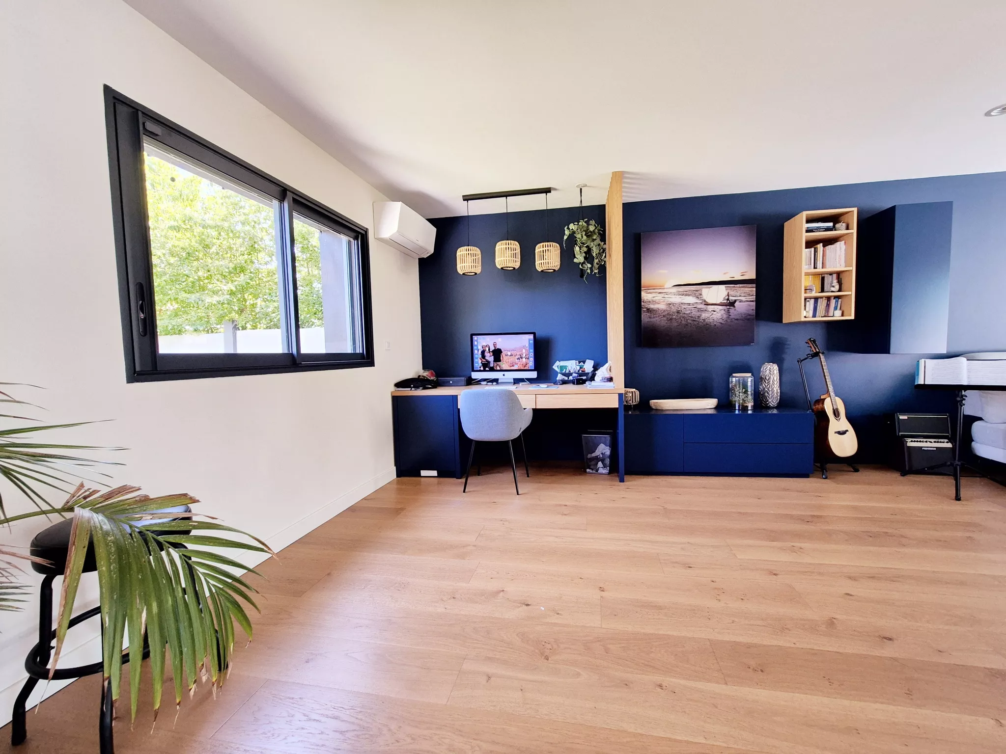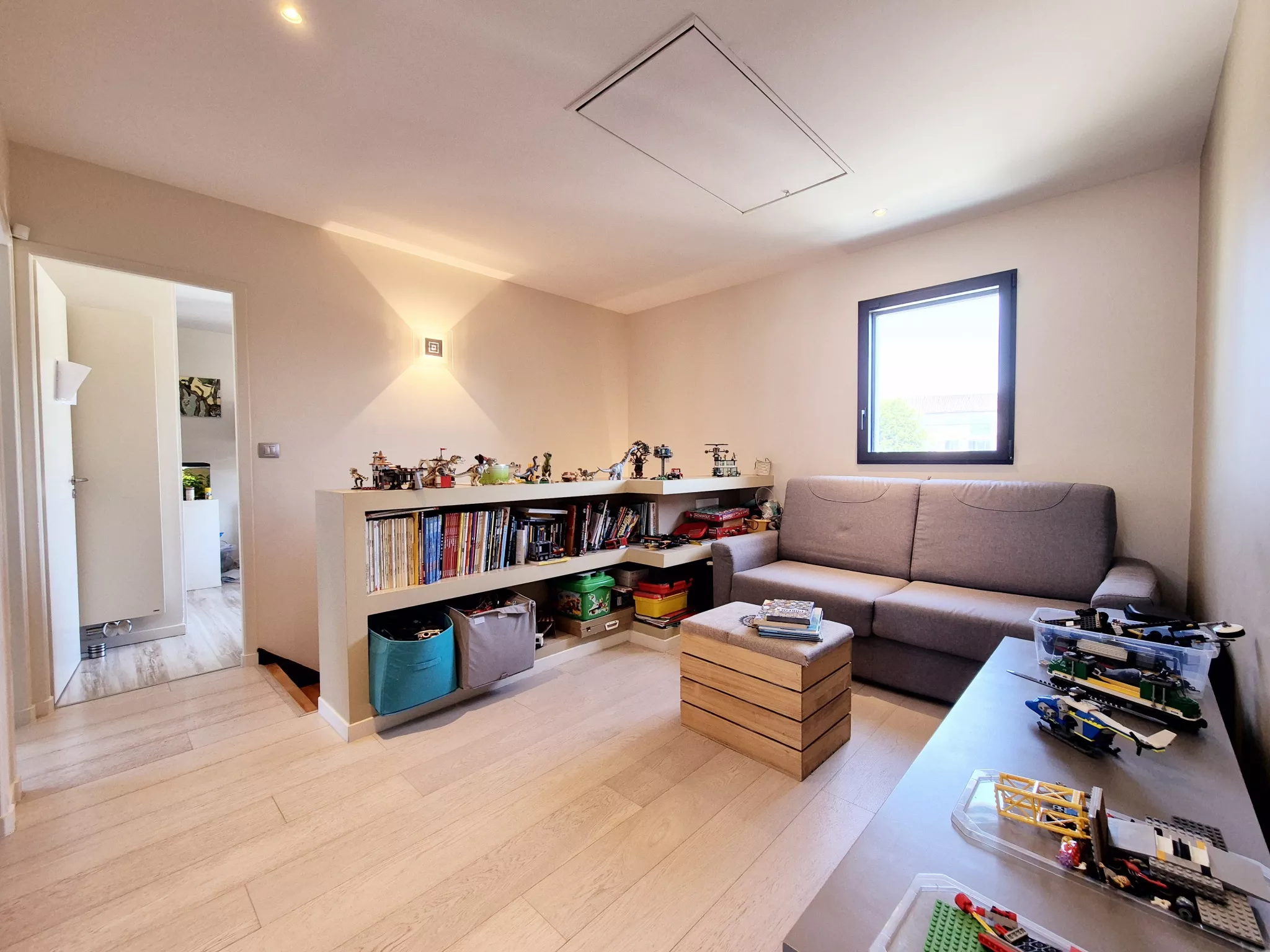 Parfaitement pensée pour une vie de famille, la maison propose quatre chambres, dont une en rez-de-chaussée. À l'étage, une suite parentale de 30 m2 offre un véritable cocon d'intimité, accompagnée de deux autres chambres et d'une salle de bains.