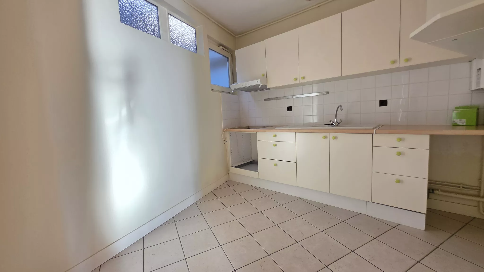 L'agencement est fonctionnel : entrée, cuisine indépendante, salon lumineux, deux chambres, salle de bains et toilettes séparées. Le charme de l'ancien est préservé au sein d'une petite copropriété calme et soignée.