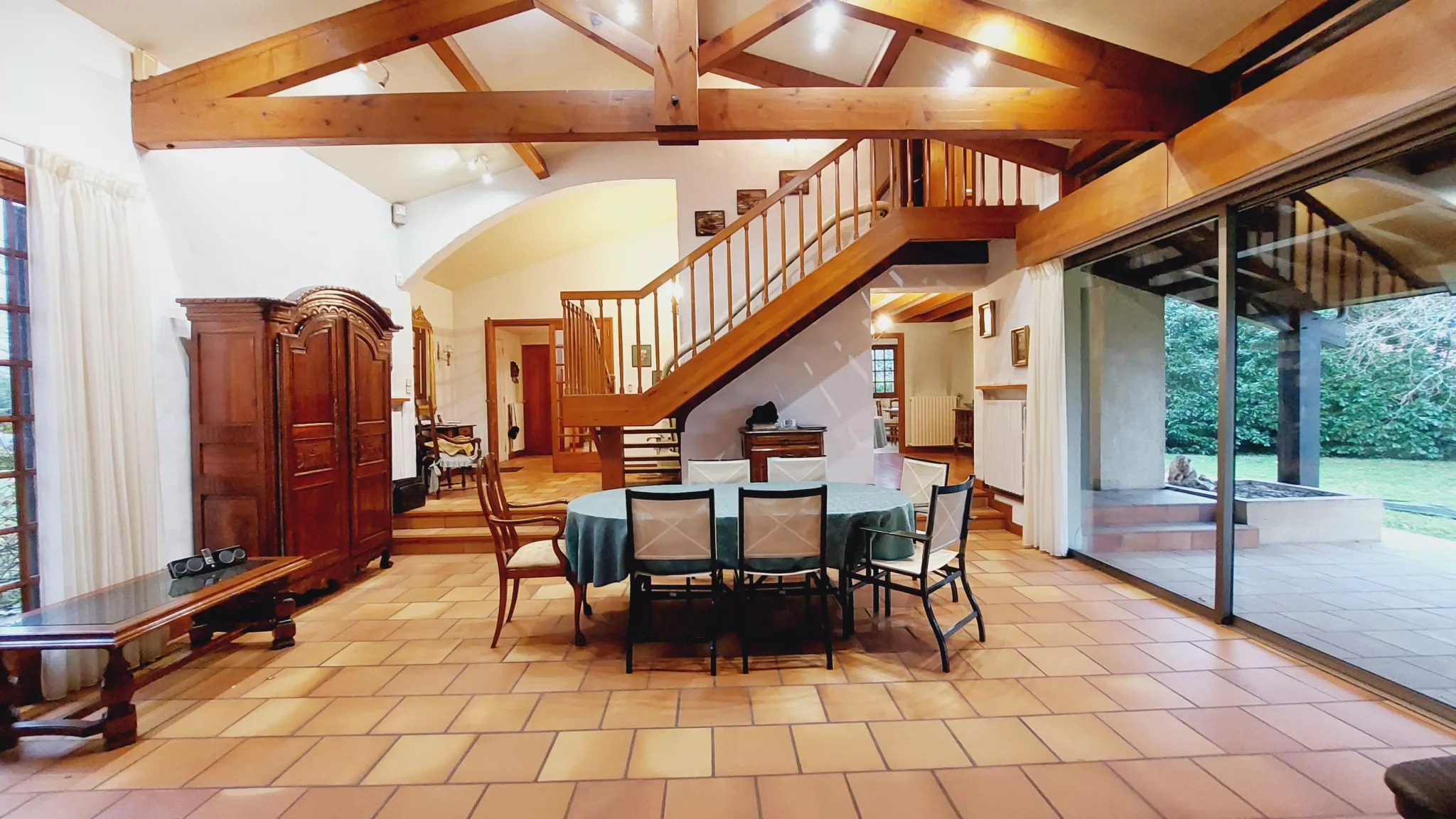 Édifiée sur un magnifique terrain arboré de plus de 7 000 m2, cette propriété séduira les amoureux de nature et de grands espaces.