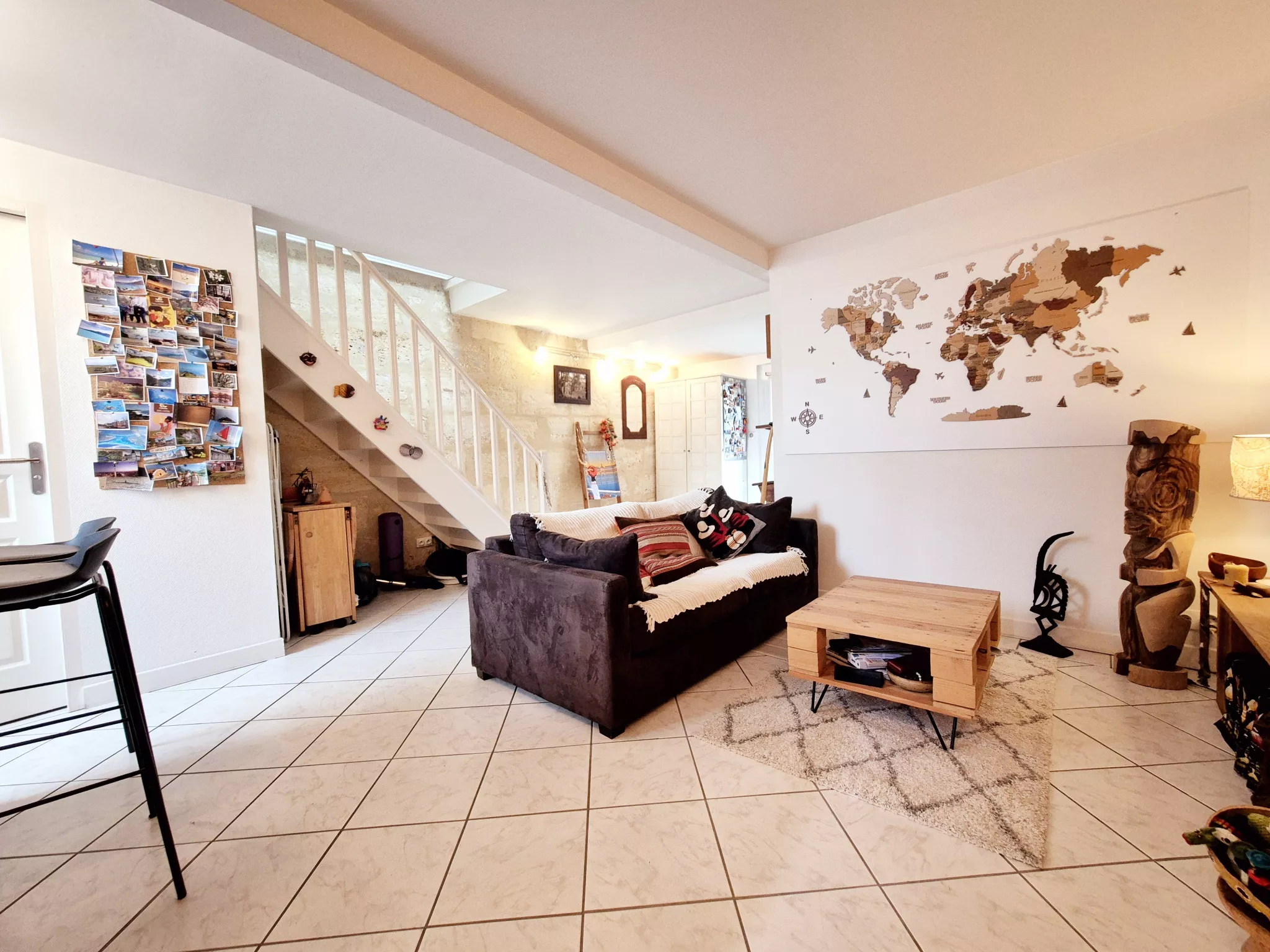 BORDEAUX CHU - A deux pas de l'arrêt de tram A de Pellegrin - Ravissante échoppe très bien tenue composée au rez-de-chaussée d'une entrée distribuant un salon / séjour avec cuisine ouverte aménagée et équipée, un WC et un espace bureau.