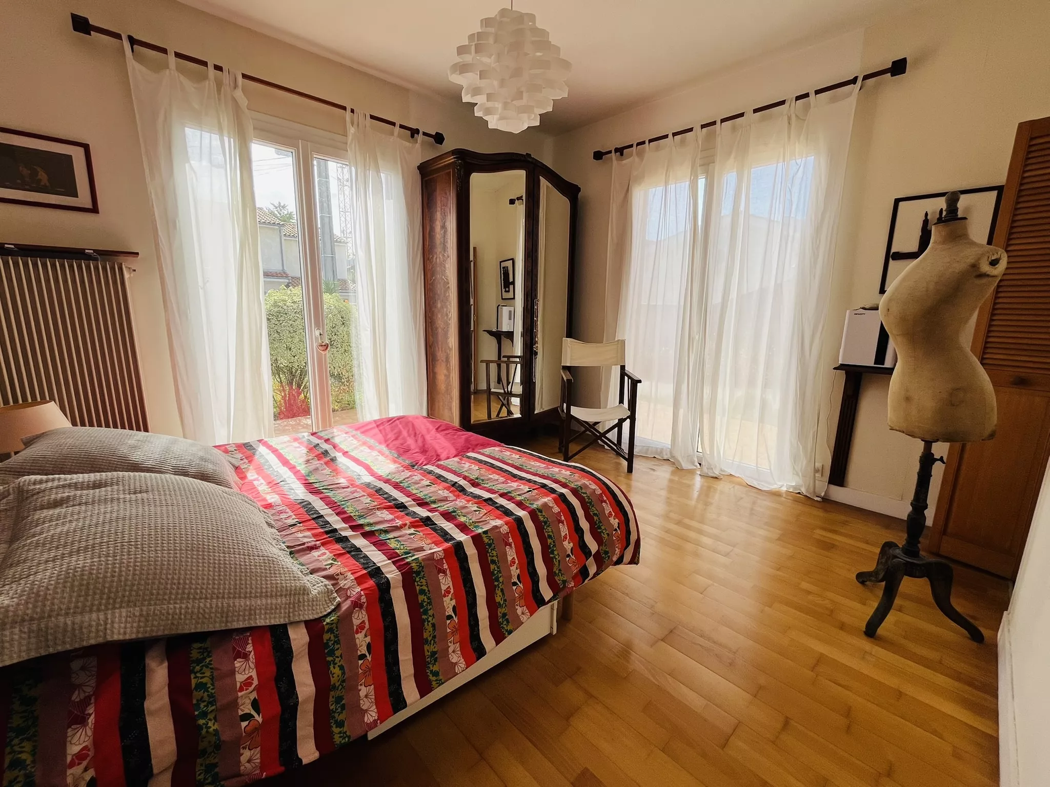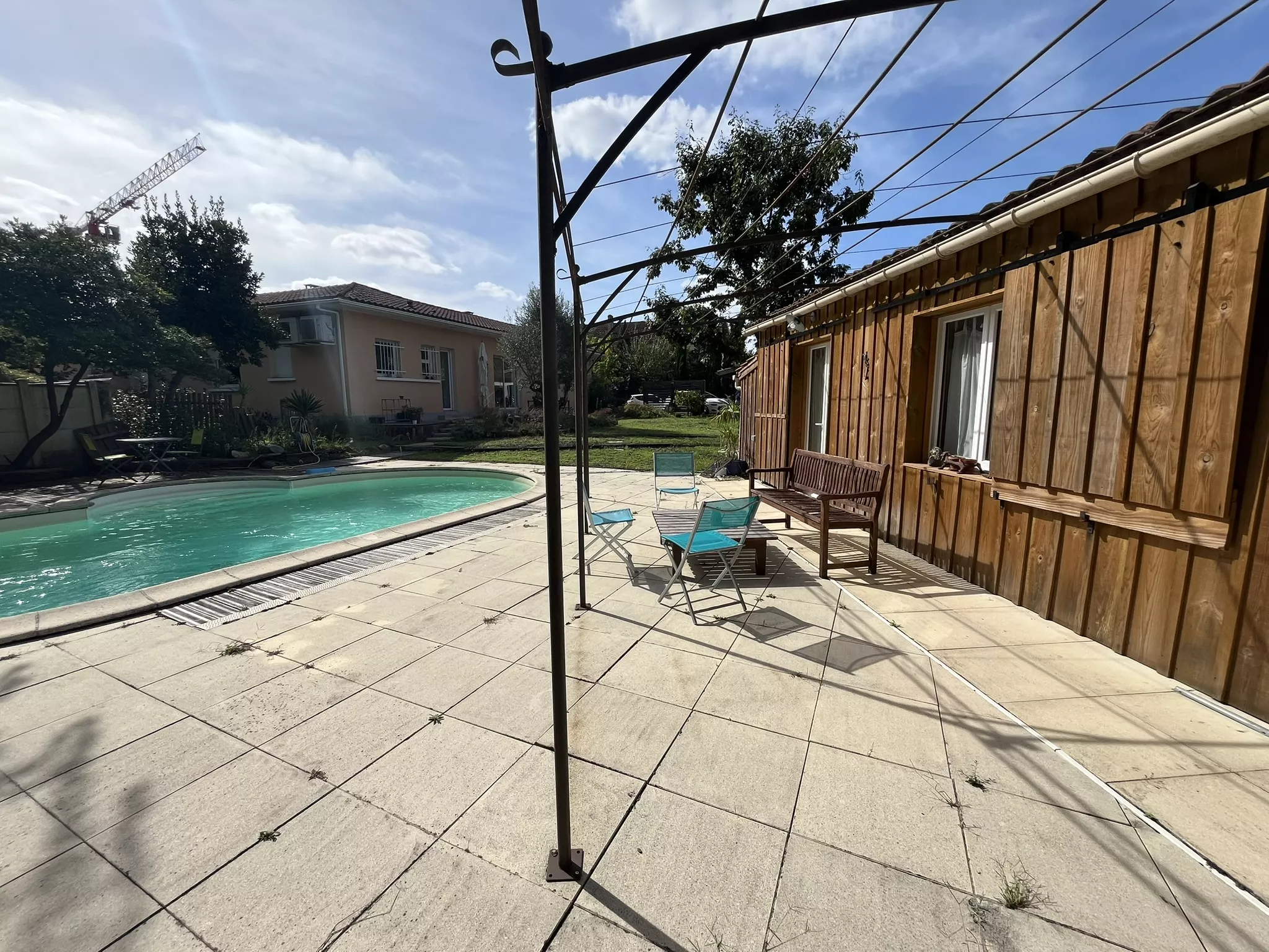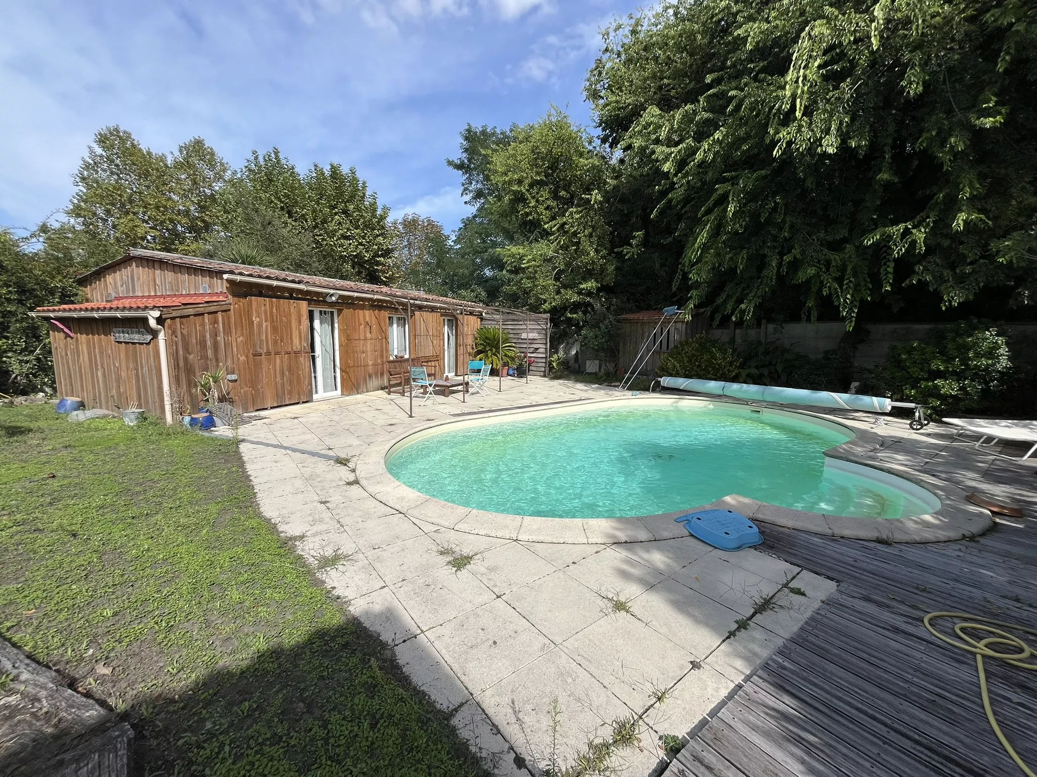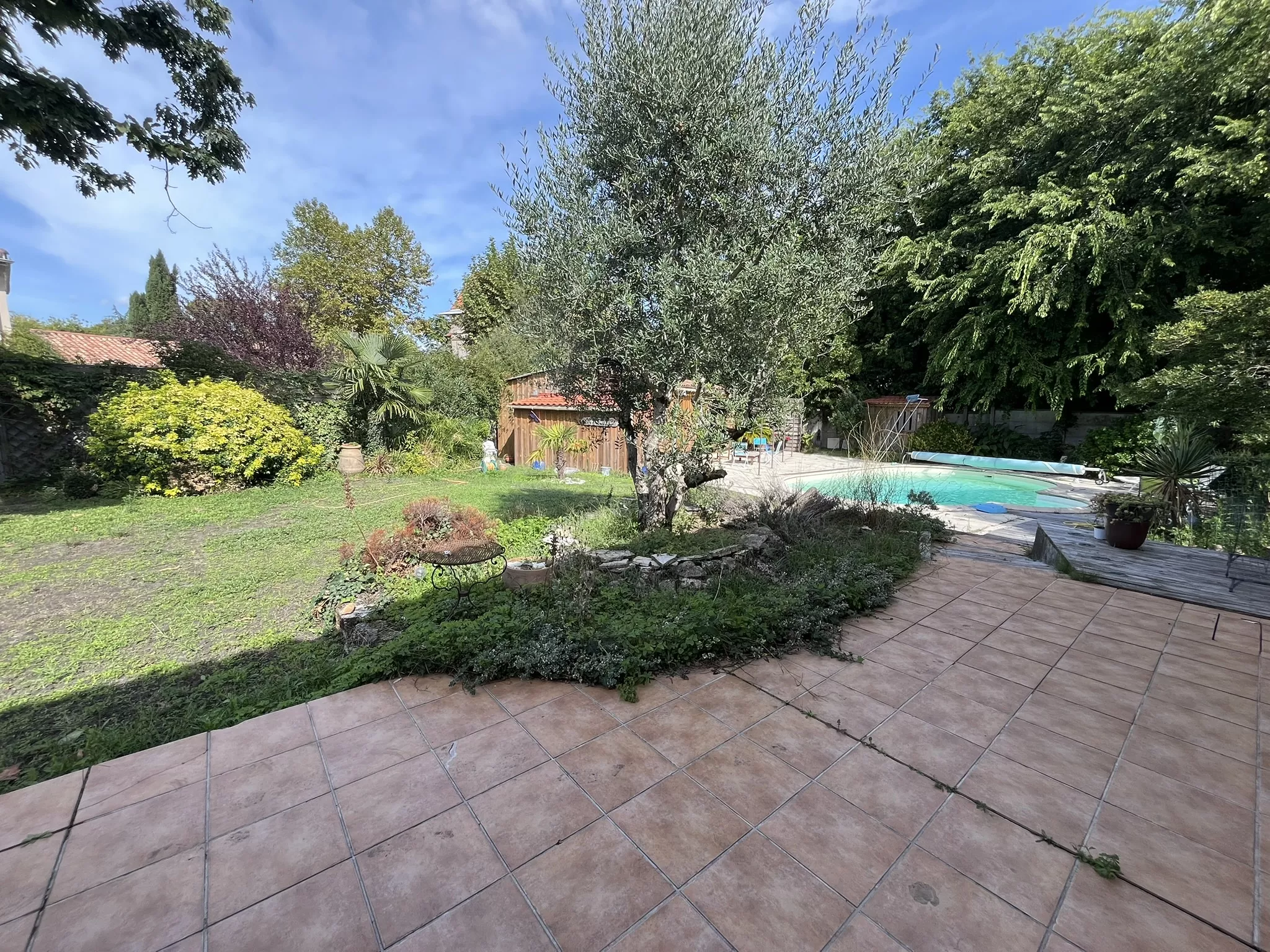 La parcelle de plus de 1300 m2 constitue un véritable atout : entièrement arborée, protégée et sans vis-à-vis, elle offre un environnement rare. Le jardin accueille une piscine traditionnelle, une petite maison indépendante de 45 m2 (type 2) récemment rénovée, idéale pour recevoir ou créer un revenu locatif, ainsi qu'un garage double et un atelier de plus de 25 m2.