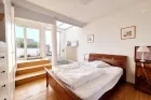 A l'étage, un palier distribuant deux chambres, une salle de bain, un WC et une buanderie.