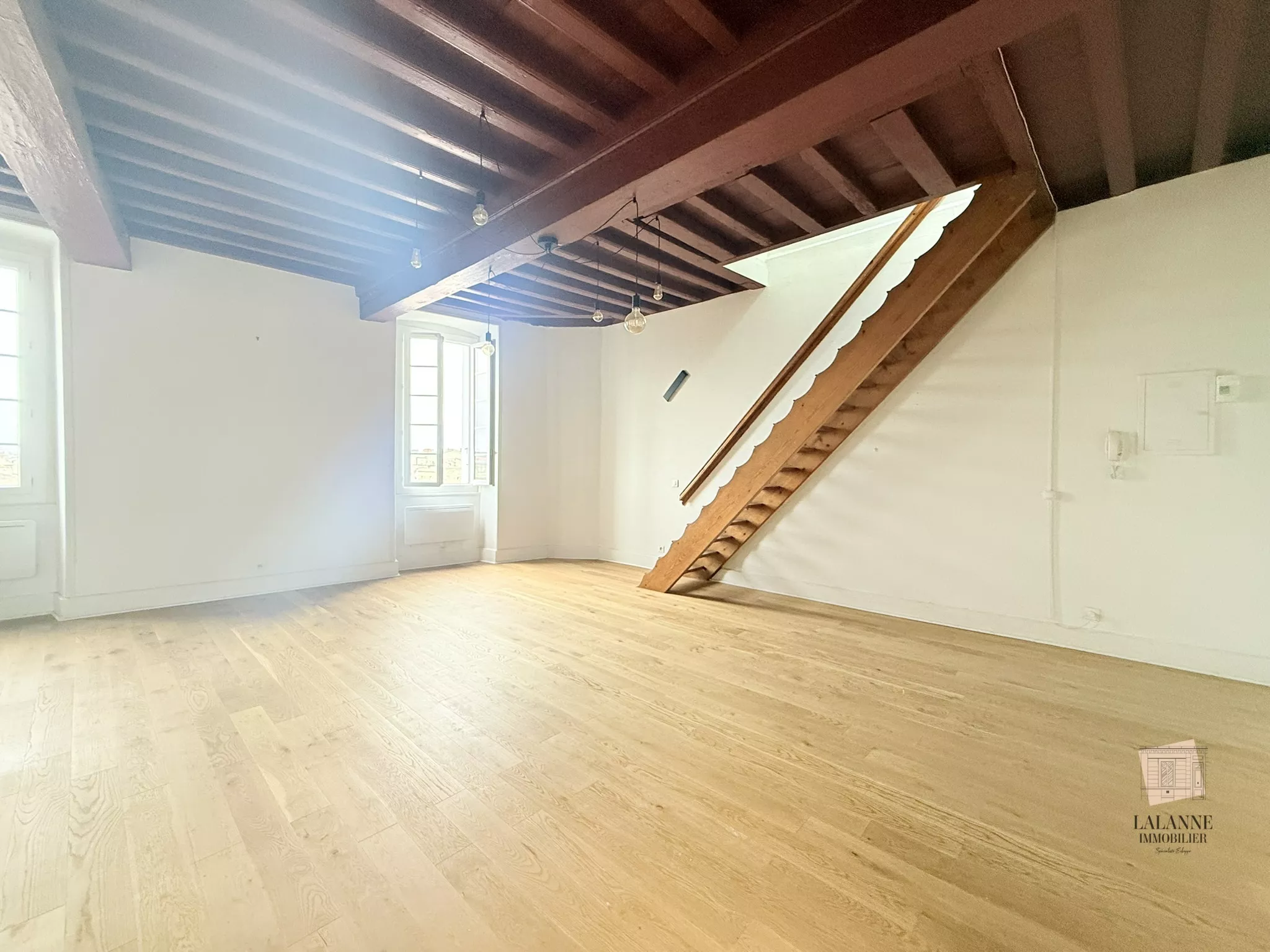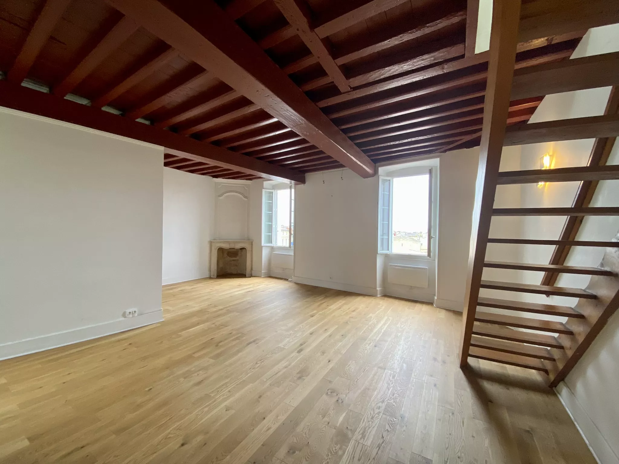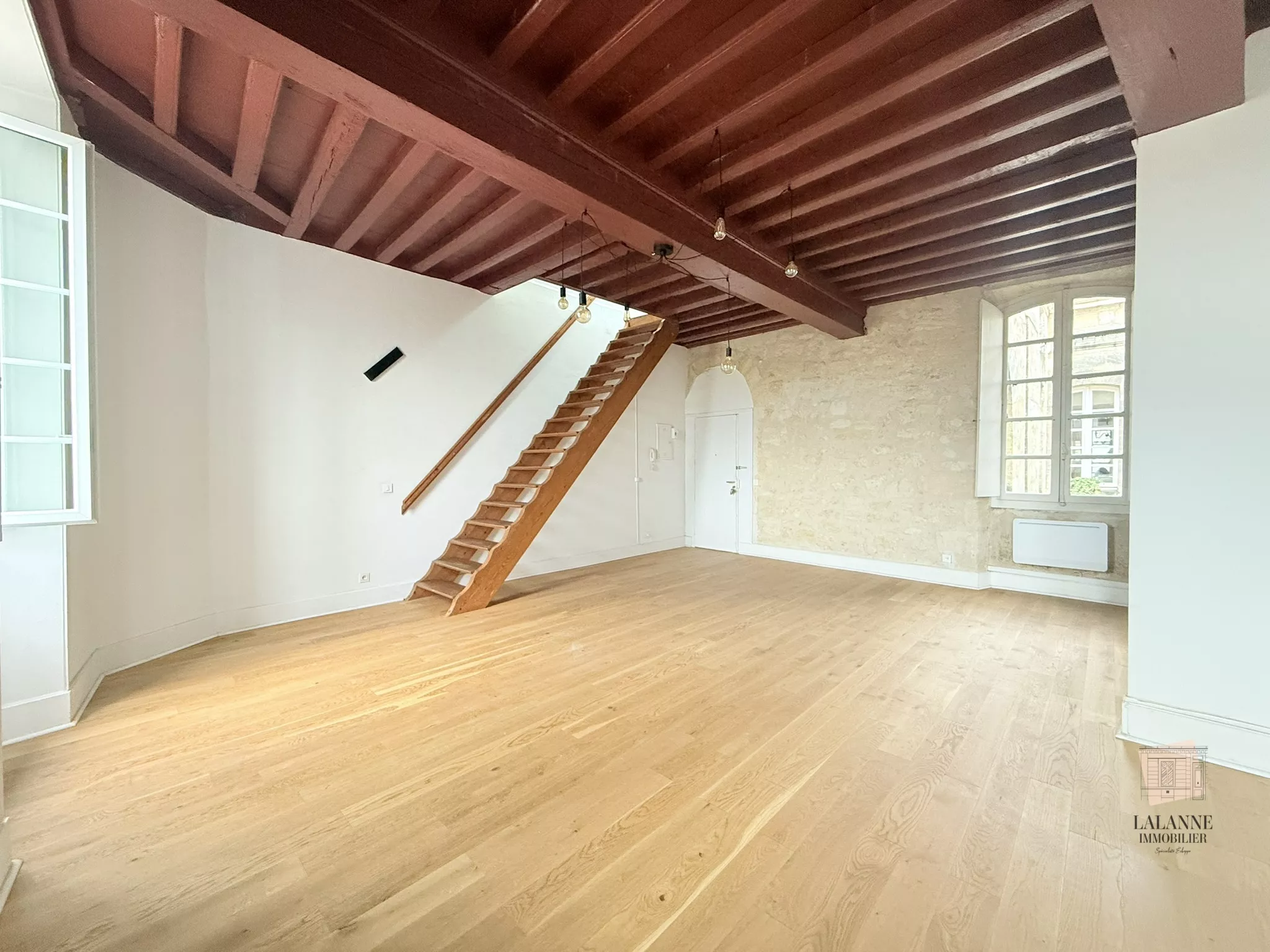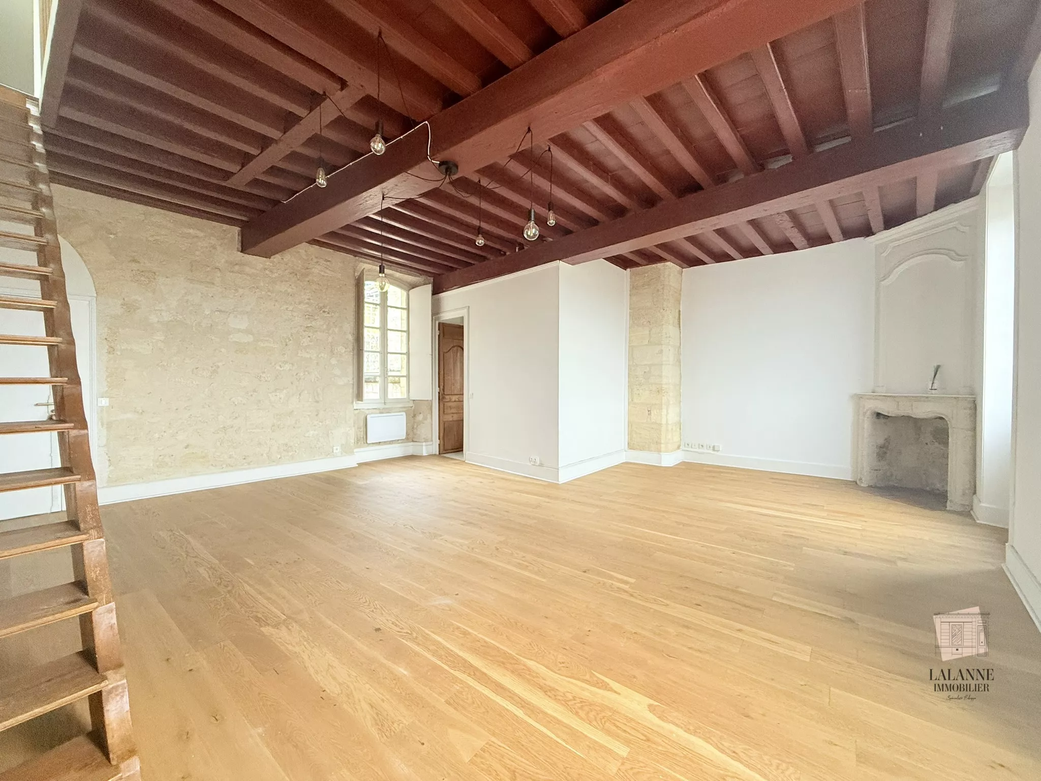 Bordeaux, Quai des Chartrons. Situation exceptionnelle. Au pied du tram. Au 3eme et dernier étage d'un bel immeuble en pierre, charmant appartement en duplex de 94 m2 comprenant un vaste séjour de 50m2, une cuisine séparée et aménagée, à l'étage : un palier, 1 chambre + espace bureau, une salle de bains. Une grande cave au rez-de-chaussée ainsi qu'une place de parking couverte et sécurisée completent l'offre de location. Libre de suite.