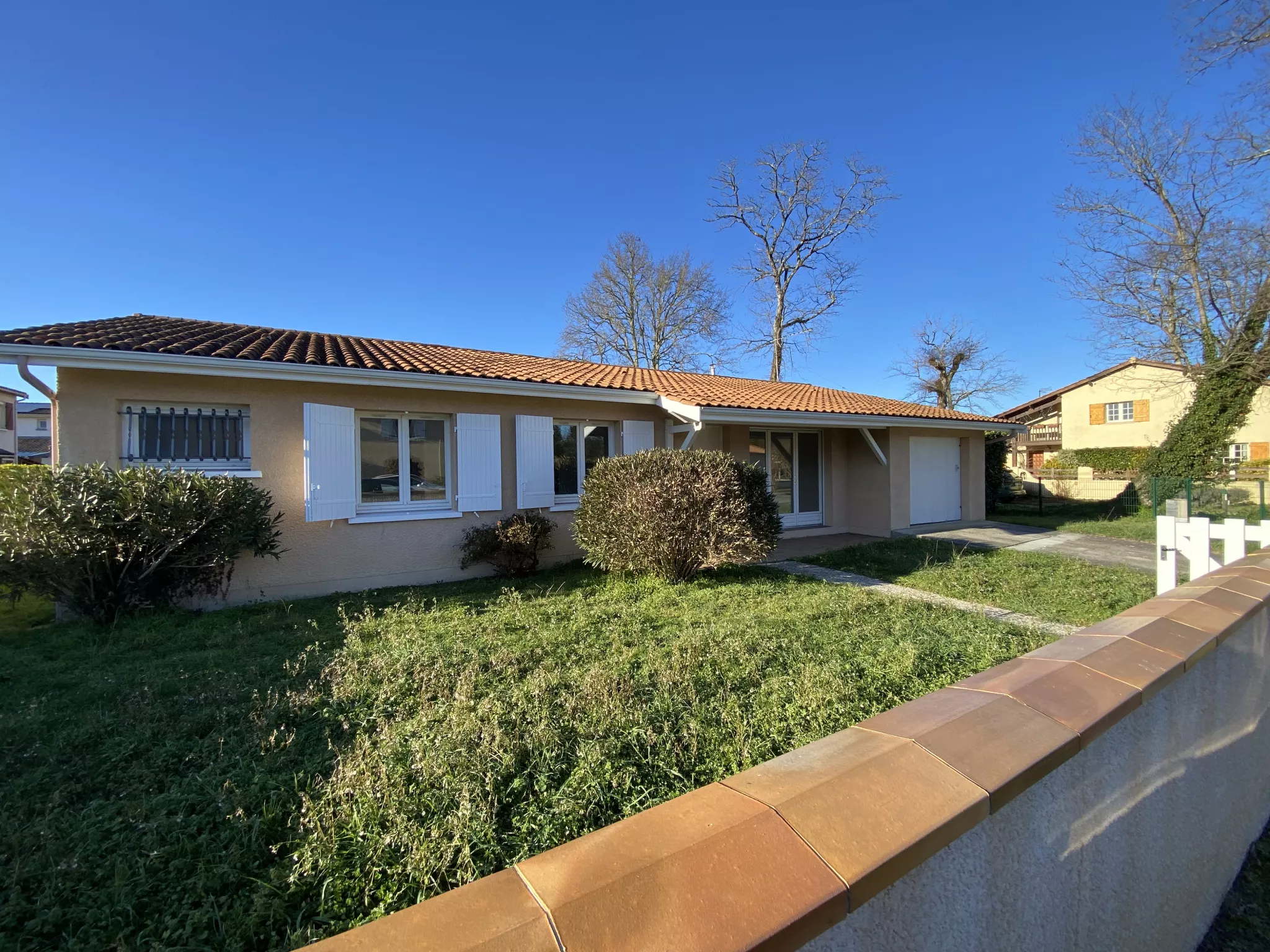Belle maison de type 5, de plain pied; composée, de 4 chambres, un vaste séjour, une cuisine indépendante, salle d'eau et salle de bains, 2 wc, un garage.