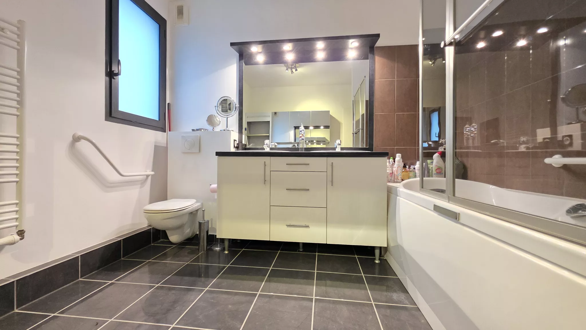 L'espace nuit accueille quatre chambres, dont une suite parentale avec salle d'eau privative, ainsi qu'une grande salle de bains : un agencement idéal pour une vie de famille harmonieuse.
