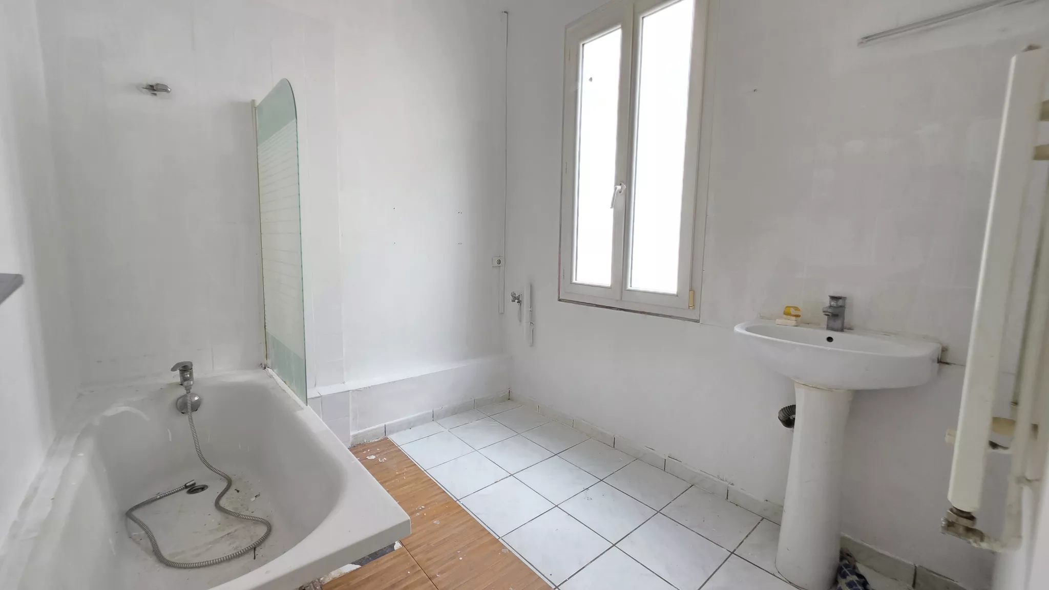 Une salle de bains fonctionnelle et des WC séparés.