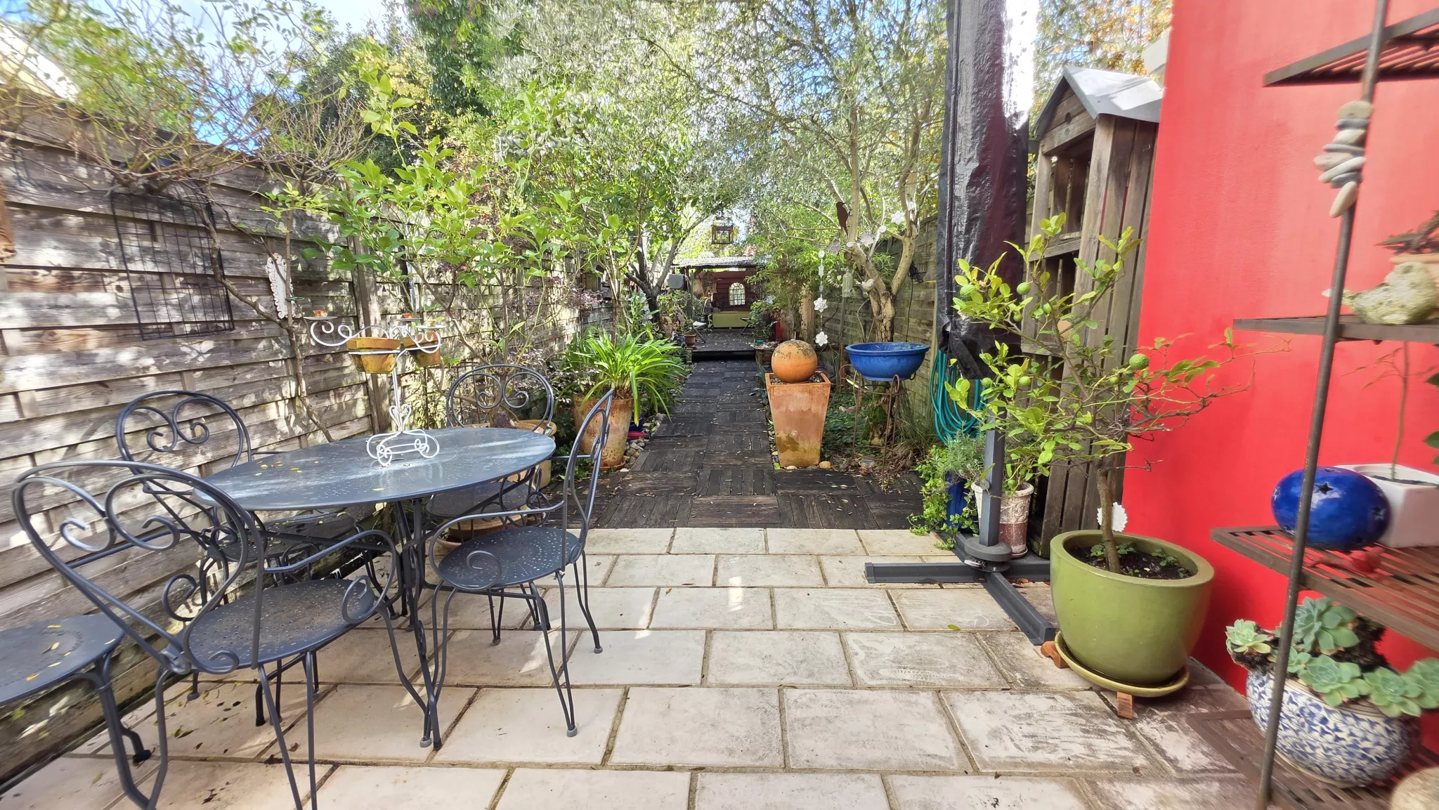Le jardin d'environ 60 m2, agrémenté d'une terrasse, offre un cadre de vie calme et convivial, particulièrement recherché dans ce secteur résidentiel.