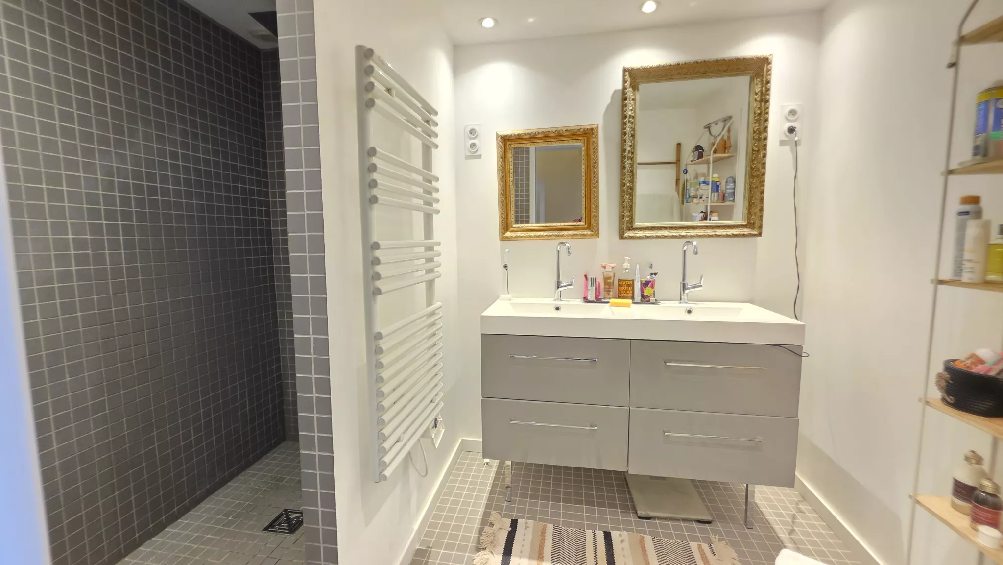 À l'étage, deux chambres lumineuses, dont une avec dressing privatif, se partagent une salle d'eau et des toilettes indépendantes, pour un confort optimal au quotidien.