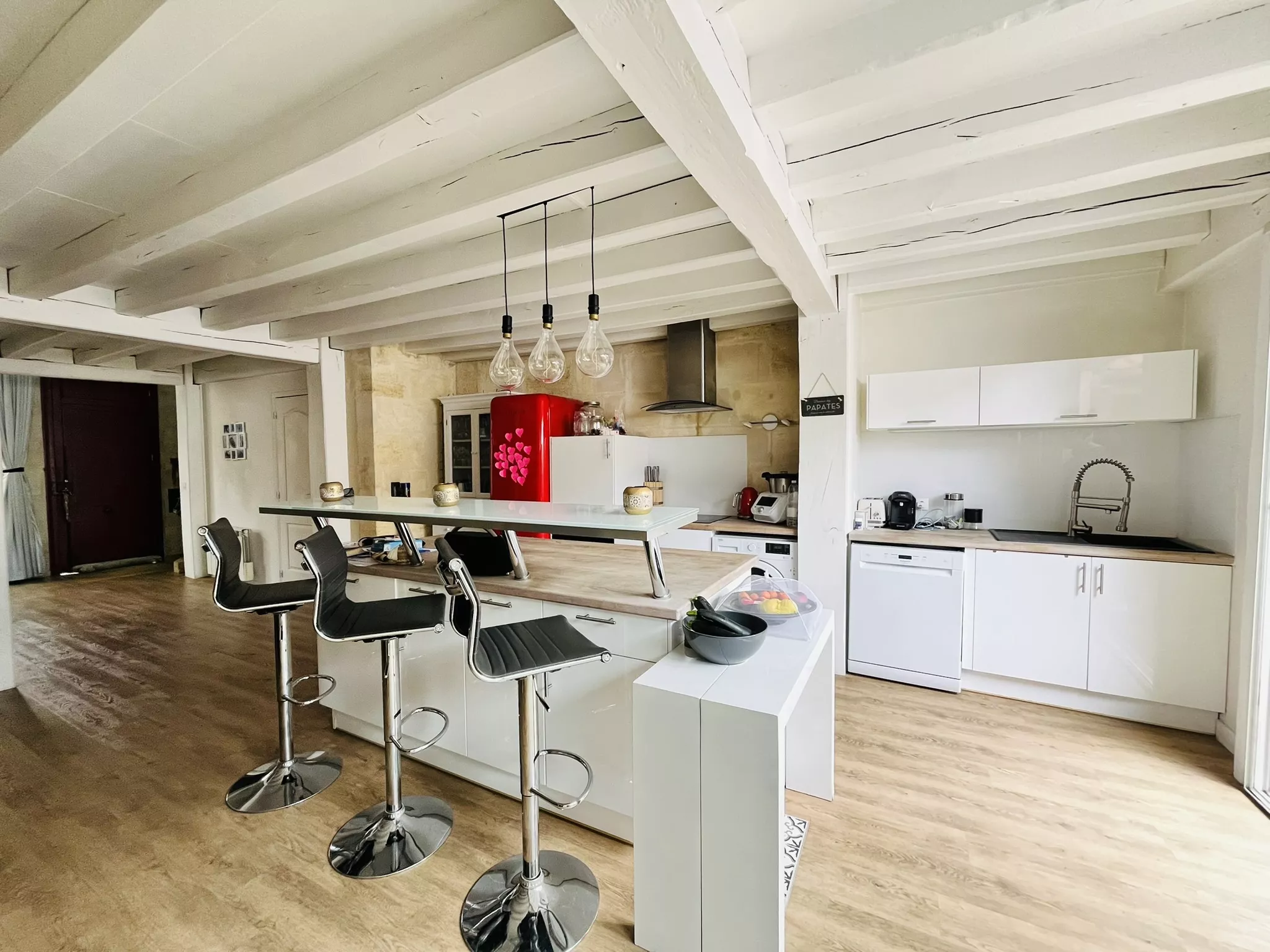 Le charme de l'ancien s'exprime à travers de beaux volumes, une belle hauteur sous plafond, des murs en pierre apparente, de larges surfaces vitrées et une lumière traversante qui confère à la maison une atmosphère unique.