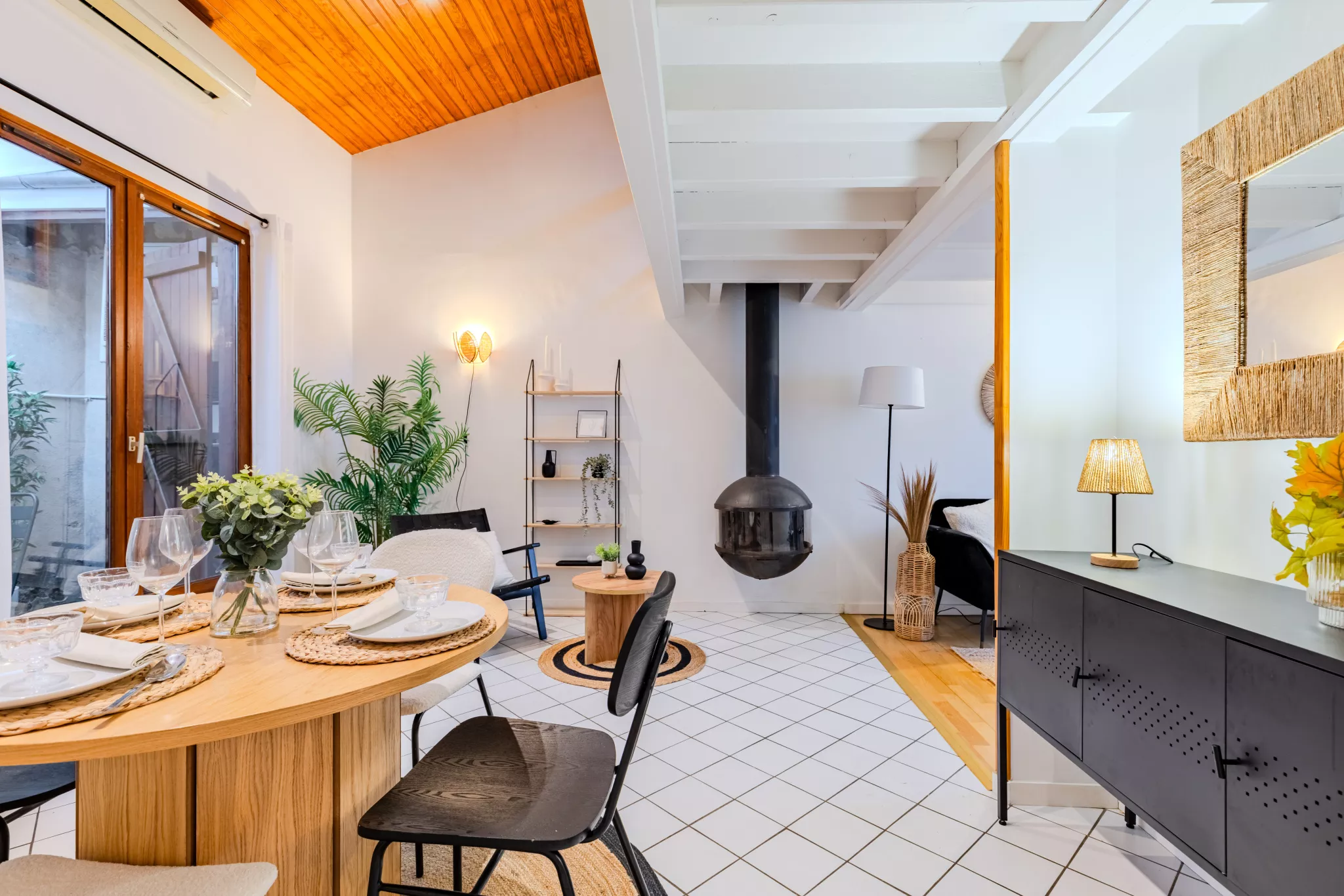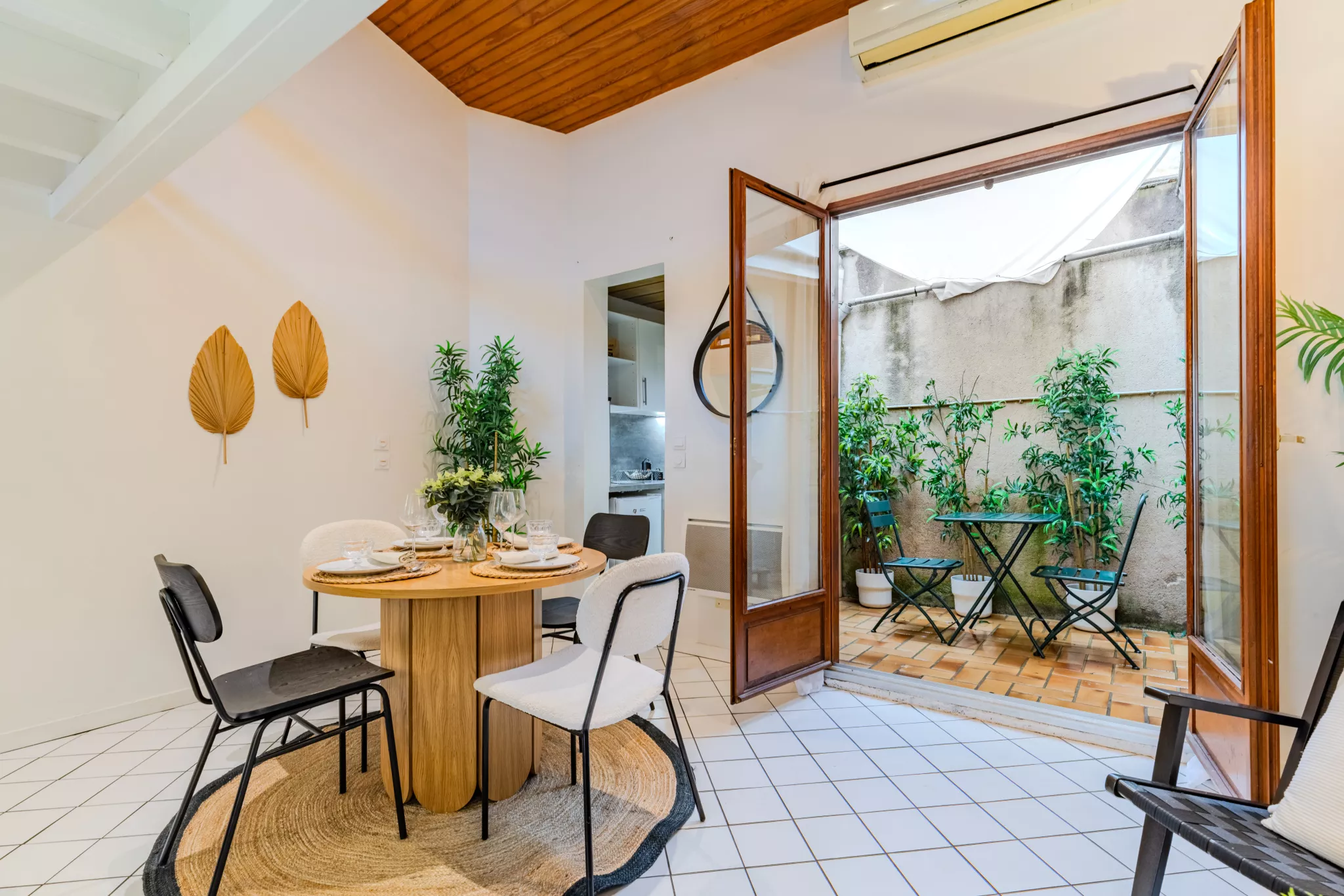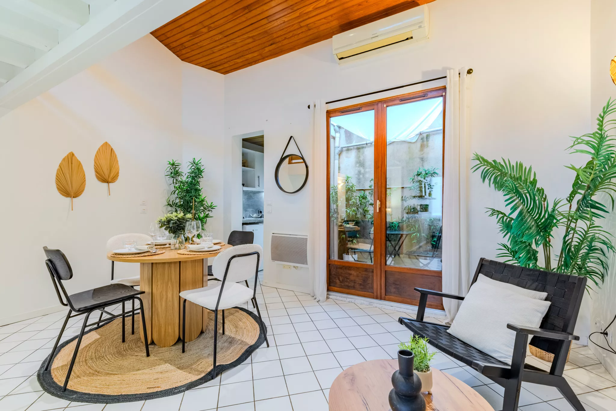Elle offre une agréable pièce de vie traversante, lumineuse, ouvrant sur une cour, idéale pour profiter de moments de détente en toute tranquillité.