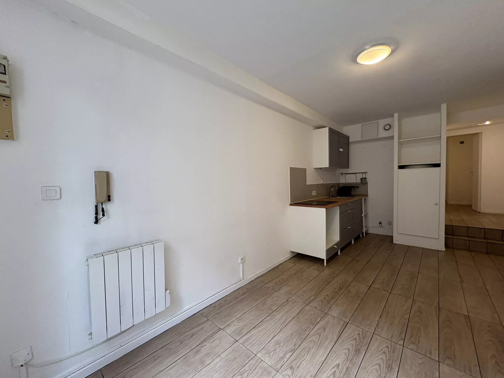 Il se compose d'un séjour lumineux avec coin cuisine, d'une chambre avec placard intégré, ainsi que d'une salle de bains avec WC.