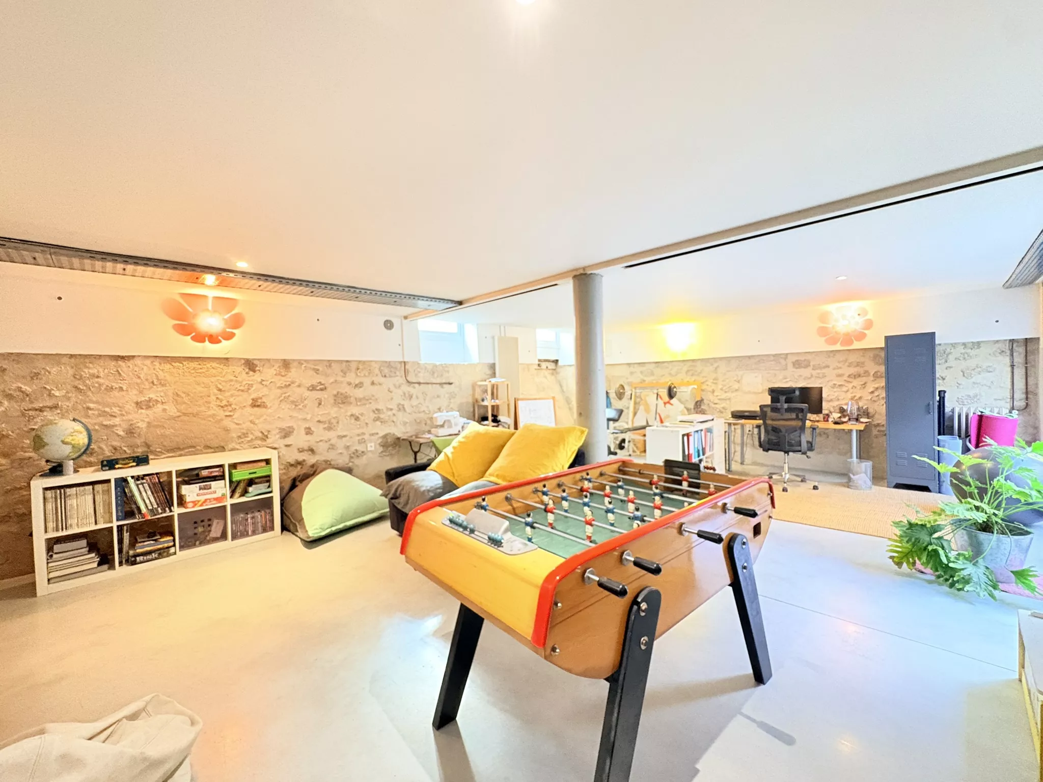 Enfin, une grande pièce avec belle hauteur de 43m2 en souplex vient compléter cette maison de caractère et une constitue un véritable espace de détente ou de travail, bénéficiant d'un accès direct à la cour arrière. Cet espace polyvalent renforce encore le potentiel et l'attractivité du bien.