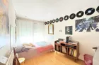 Deux chambres se partagent une salle d'eau avec toilettes. L'une bénéficie d'un balcon, l'autre s'ouvre sur la cour arrière, apportant luminosité et autonomie des espaces. Un autre espace nuit possède deux chambres supplémentaires tournées vers le jardin sud, ainsi qu'une salle de bains et des toilettes indépendants, offrant une configuration familiale très appréciée.