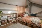Au dernier niveau, une mezzanine offre un espace supplémentaire idéal pour une 3e chambre, bureau ou espace détente.