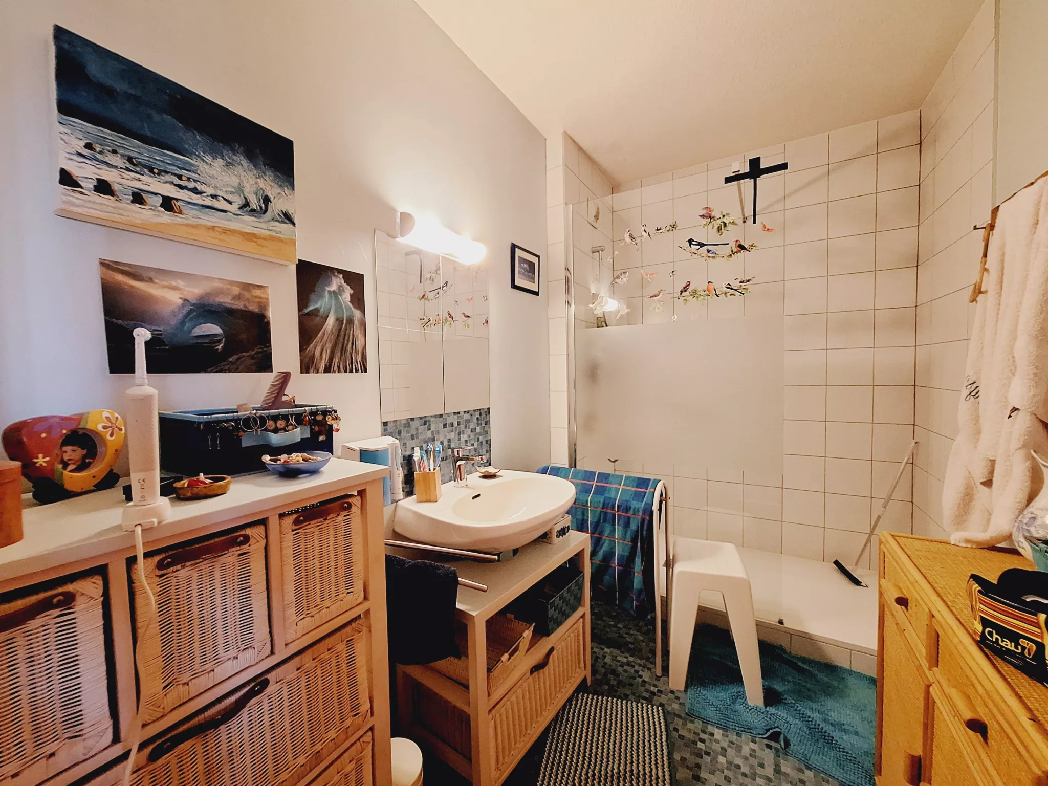 Un couloir mène ensuite à un WC séparé, une salle d'eau, un cellie et deux belles chambres organisant ainsi clairement l'espace nuit et l'espace de vie.