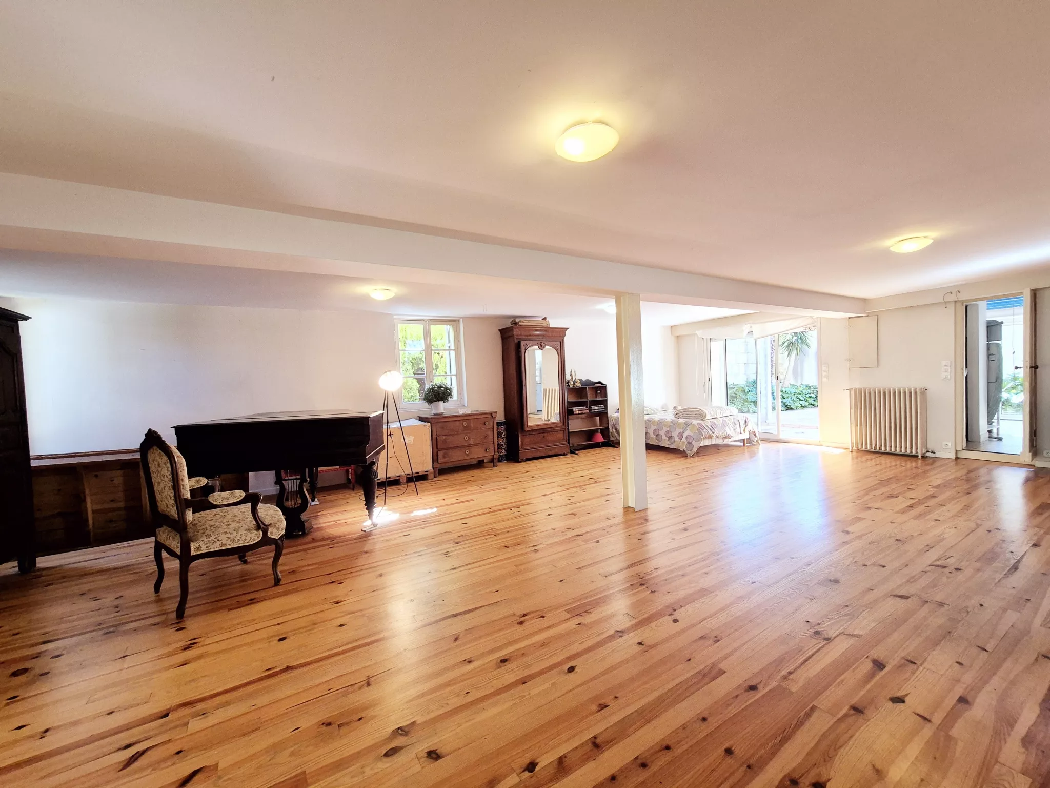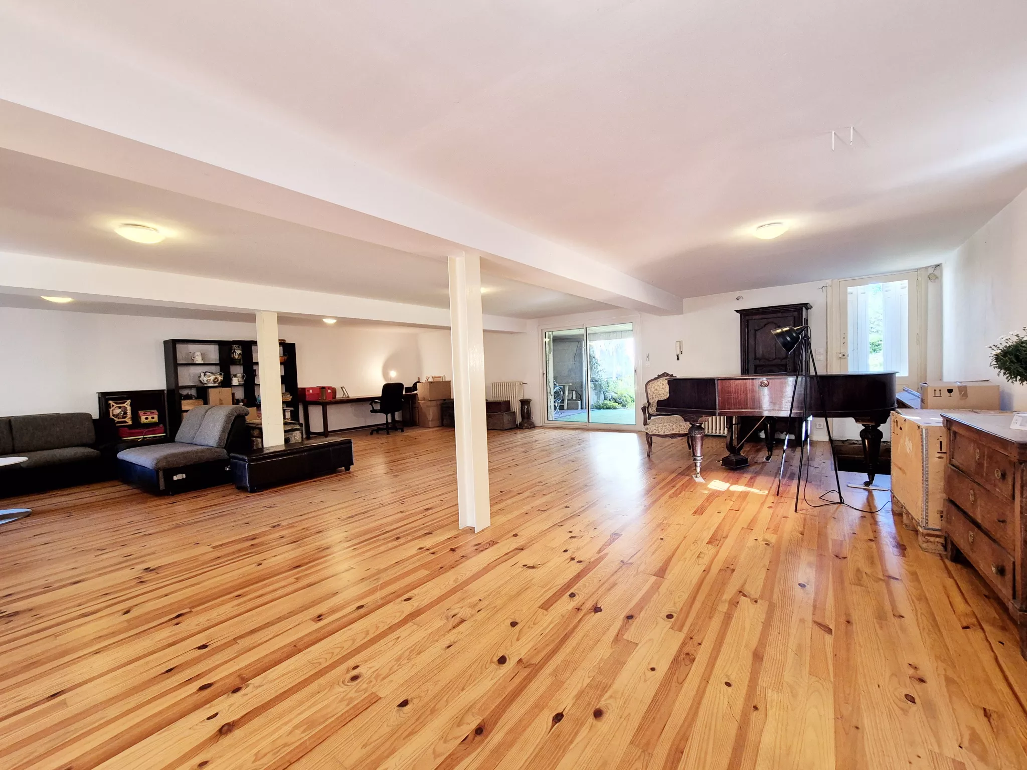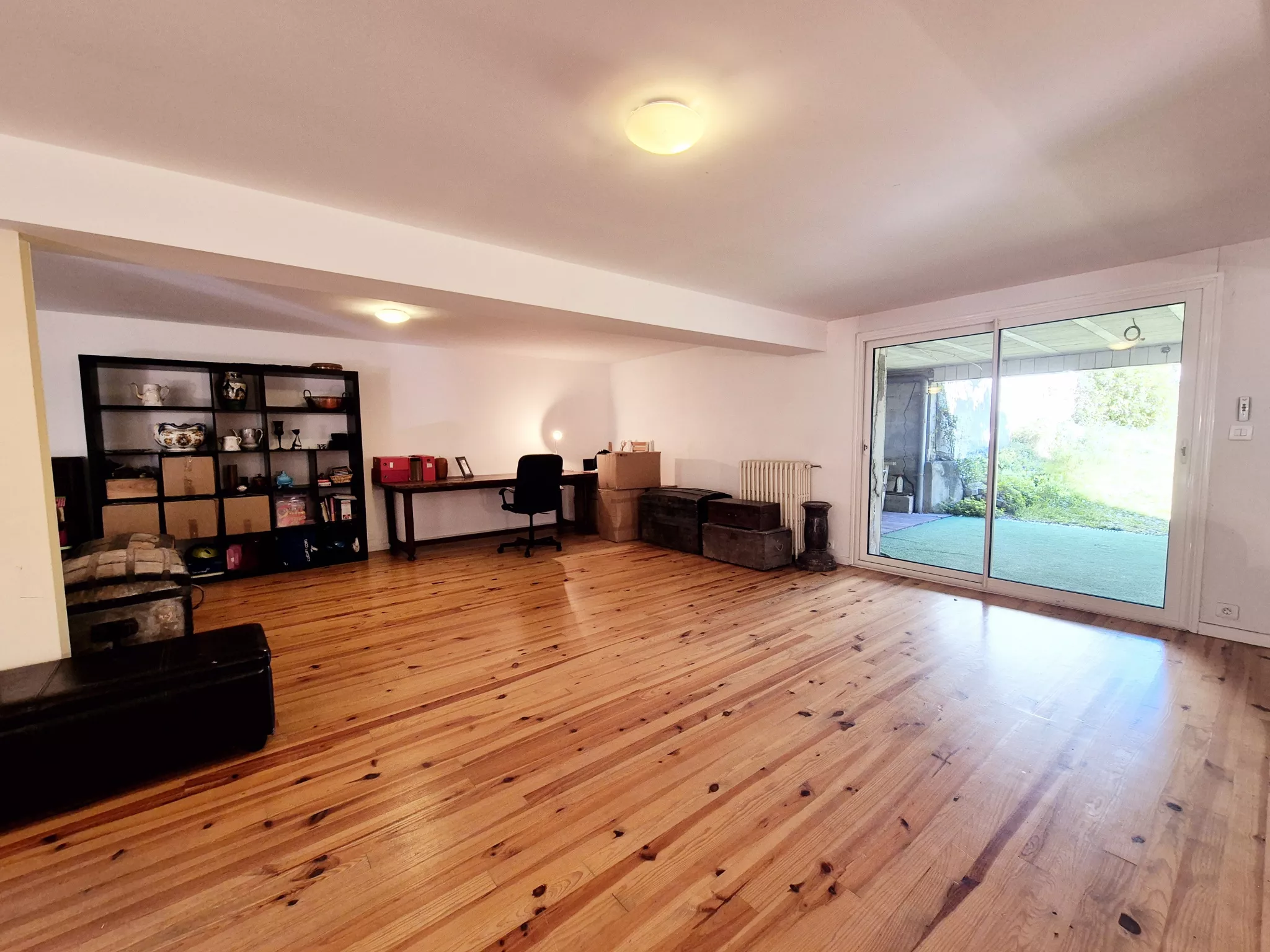 Au rez-de-jardin, une buanderie et une grande pièce de vie polyvalente de 95 m2 complètent cet espace fluide et fonctionnel, idéal pour les besoins quotidiens d'une famille pouvant accueillir plusieurs chambres et points d'eau.