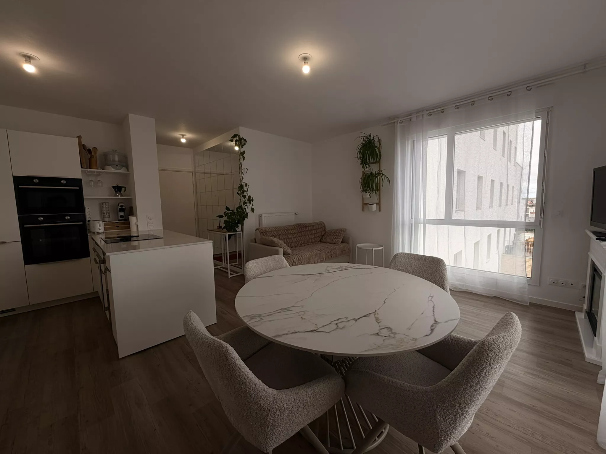 A LOUER - Grand T3 Meublé situé dans le nouveau quartier du Belvedere, cet appartement se compose d'une grande entrée avec rangement donnant sur un agréable salon/séjour lumineux avec cuisine américaine tout équipée. Il dispose également de deux chambres, une salle d'eau spacieuse ainsi que d'une buanderie.