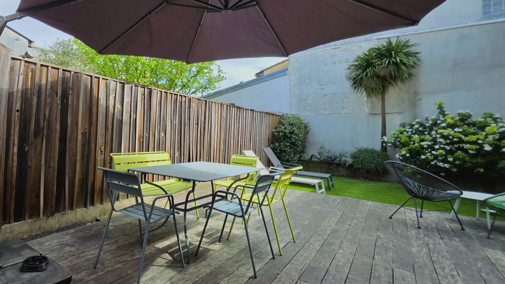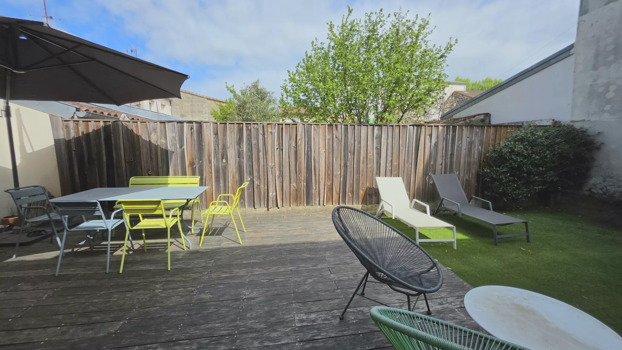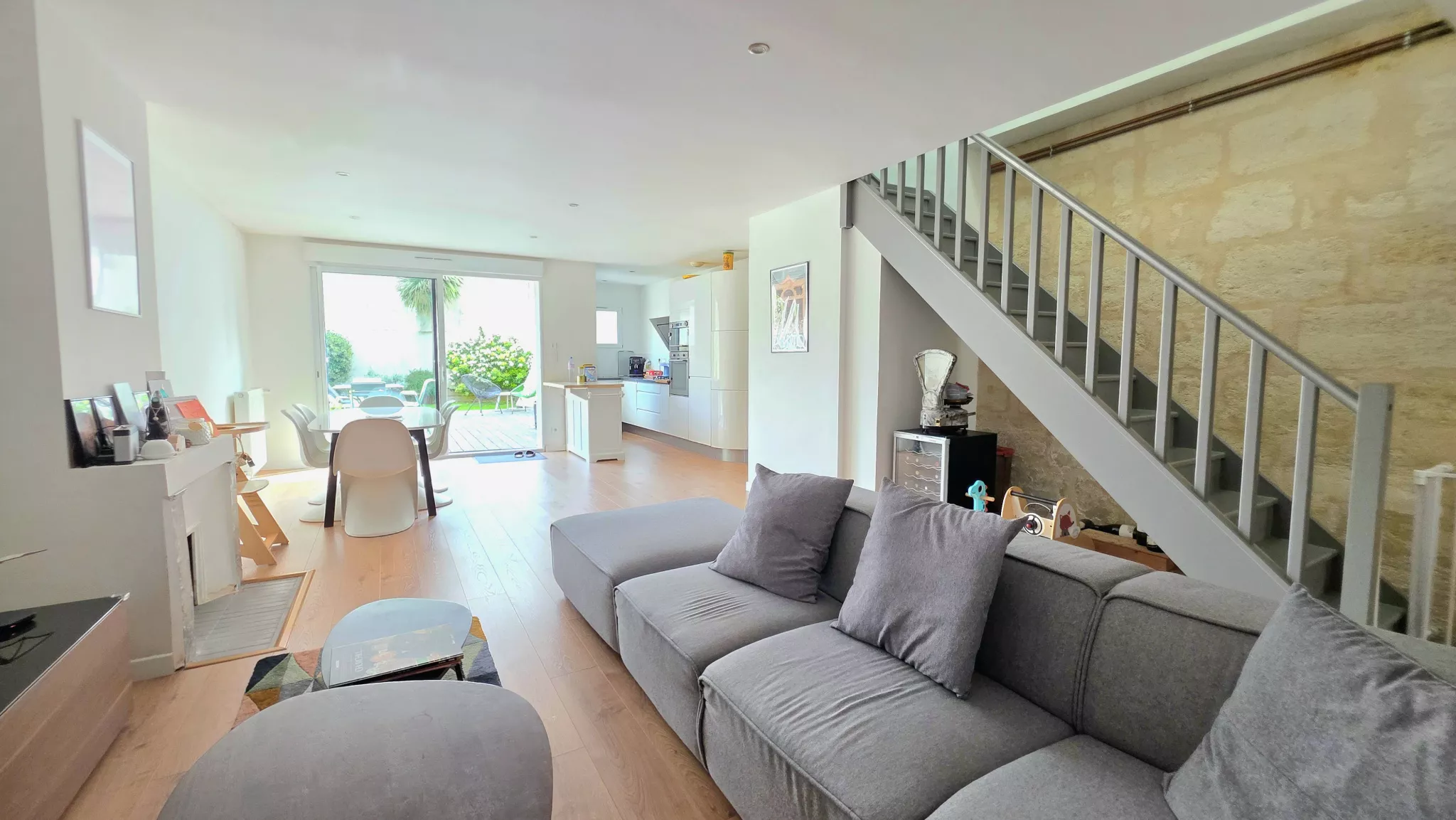 Dans le quartier recherché d'Ornano à Bordeaux, cette élégante échoppe entièrement rénovée et surélevée en 2016 offre un cadre de vie privilégié, au calme, tout en restant à proximité immédiate du tramway, des commerces et du centre-ville. Dès l'entrée, la maison dévoile une atmosphère chaleureuse et soignée, portée par une belle luminosité et des prestations alliant charme de l'ancien et confort contemporain. La pièce de vie, spacieuse et exposée plein sud, accueille une cuisine ouverte équipée avec un coin buanderie discret. La cheminée décorative et le mur en pierre de taille apportent une véritable identité à cet espace convivial, prolongé par un agréable jardin sans vis-à-vis, parfait pour profiter de moments de détente en toute intimité. Le rez-de-chaussée dispose également d'une chambre avec sa salle d'eau, idéale pour une vie de plain-pied ou pour recevoir. À l'étage, deux chambres supplémentaires et une grande salle de bains avec baignoire, douche et WC complètent l'ensemble avec fonctionnalité. Une maison pratique et harmonieuse, parfaitement adaptée à une vie de famille, dans un secteur prisé où tout se fait facilement à pied. Contactez LALANNE IMMO au 05 56 24 58 01
