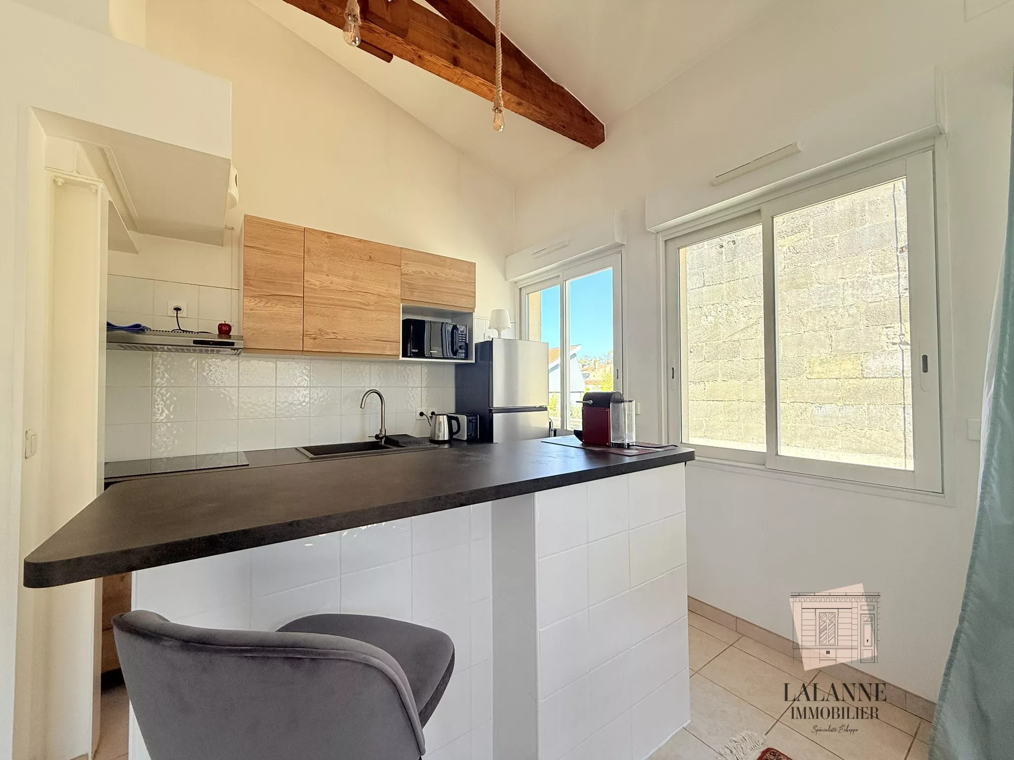 Cet appartement se compose d'une pièce de vie spacieuse et lumineuse, d'une cuisine entièrement équipée (plaques de cuisson, micro-ondes, grand réfrigérateur, machine à café, machine à laver). Une chambre séparée avec literie de qualité et rangements optimisés. Une salle d'eau et WC séparés.