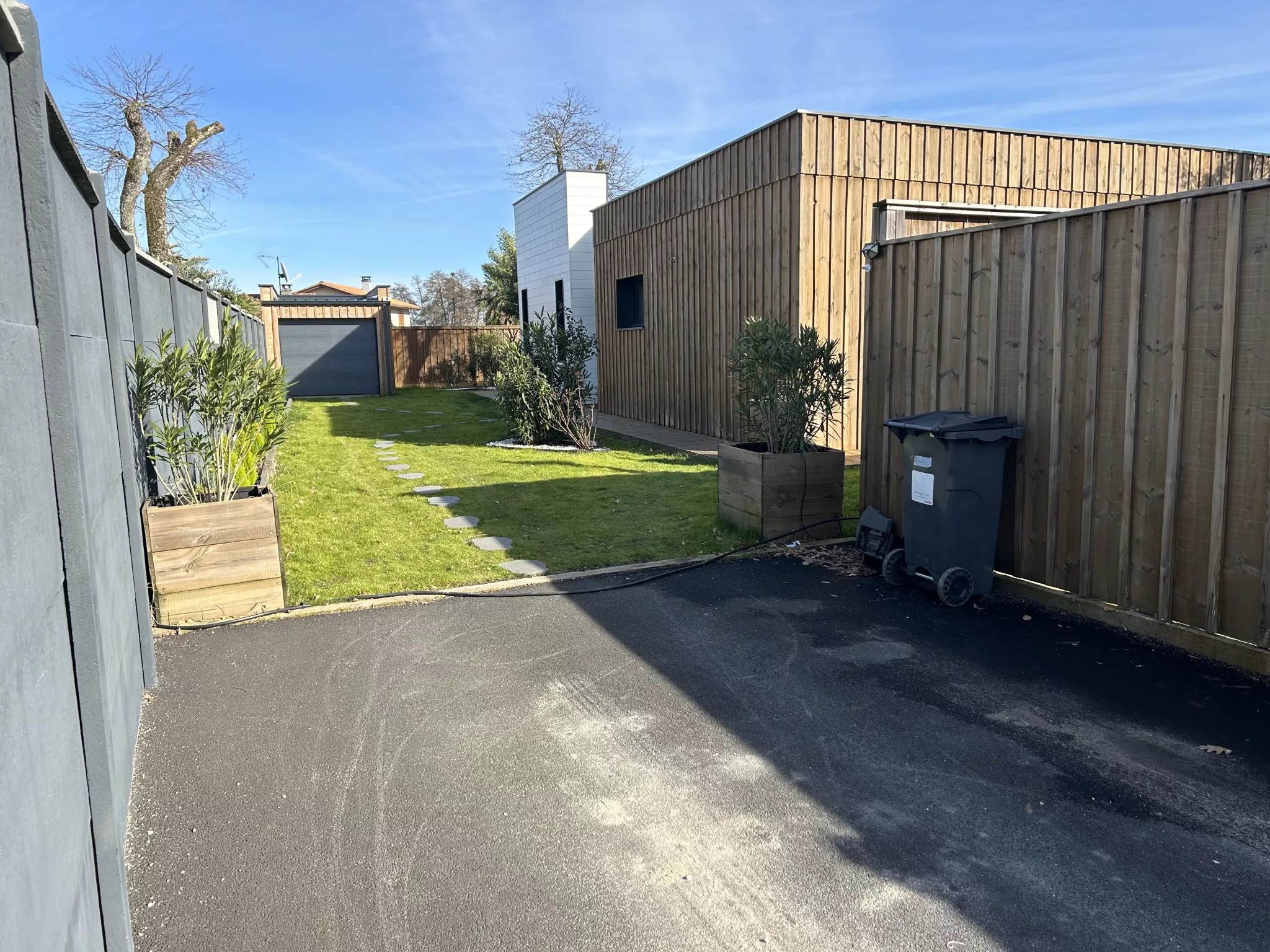 Située dans un quartier résidentiel calme et recherché de Corbiac, à proximité immédiate des commerces, écoles et transports, cette maison contemporaine ossature bois de plain-pied, dessinée par un architecte en 2020, offre un cadre de vie alliant confort, élégance et fonctionnalité.