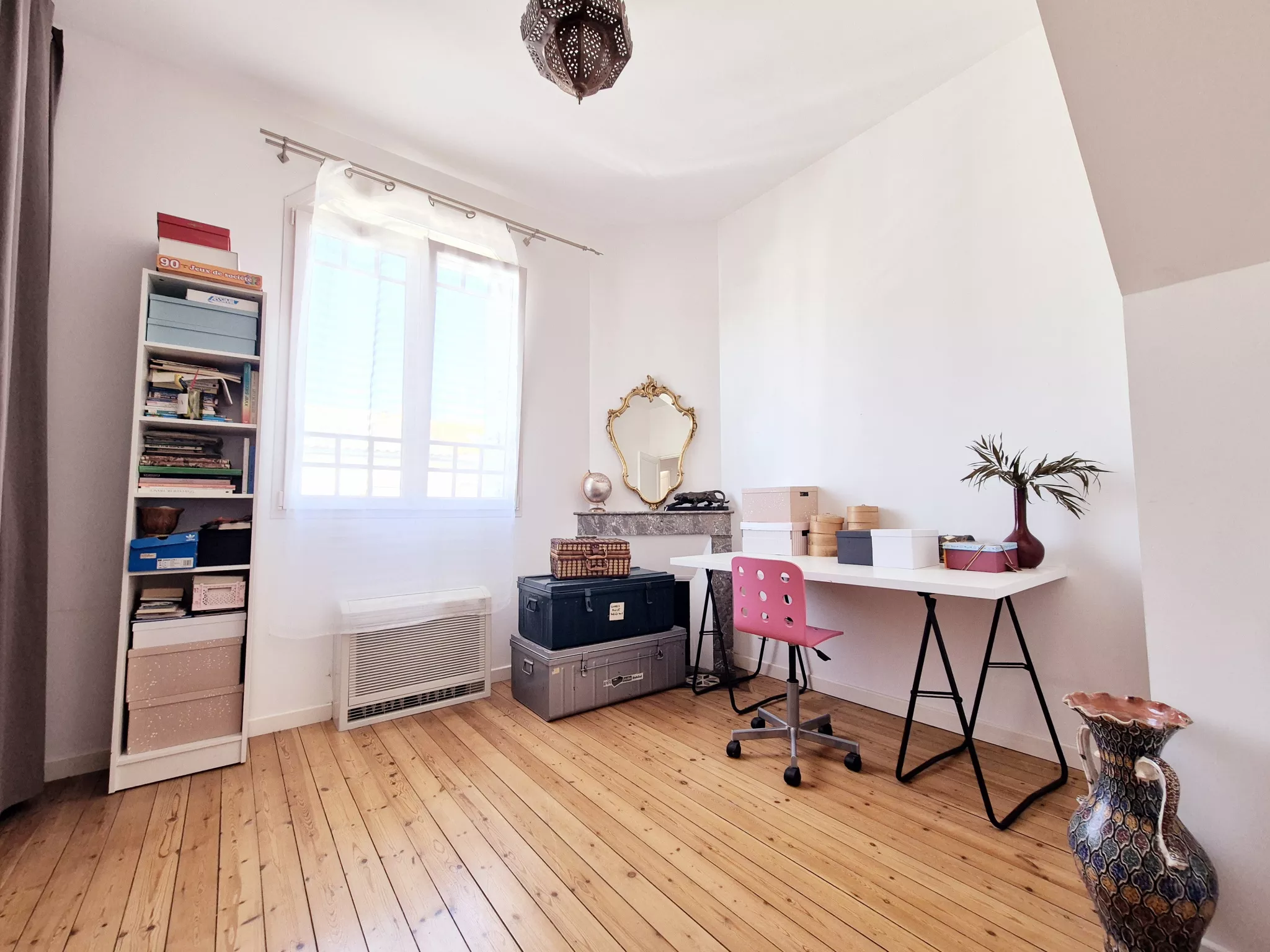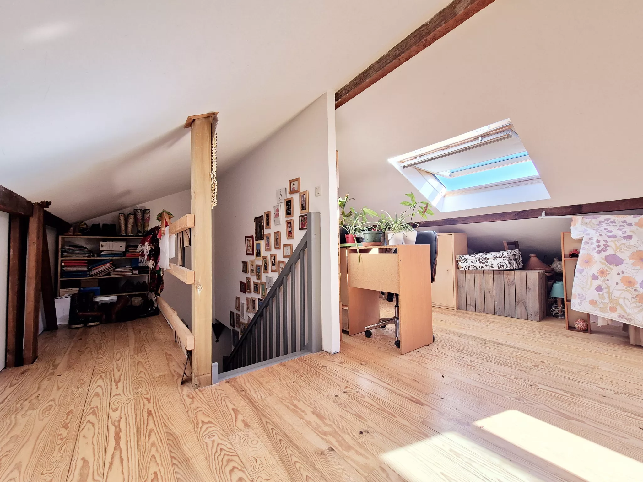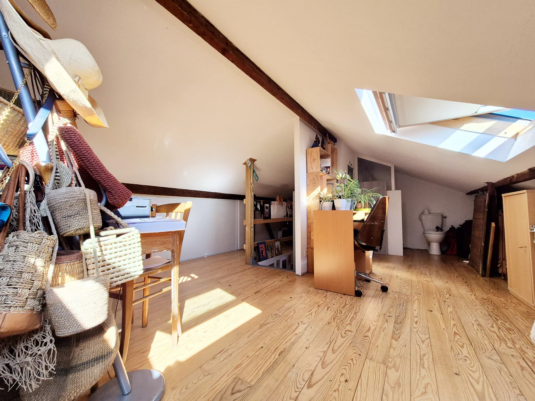 Au deuxième étage, aménagé sous les combles, un espace lumineux de 20 m2 environ avec douche et WC pouvant accueillir une quatrième chambre ou espace de travail.