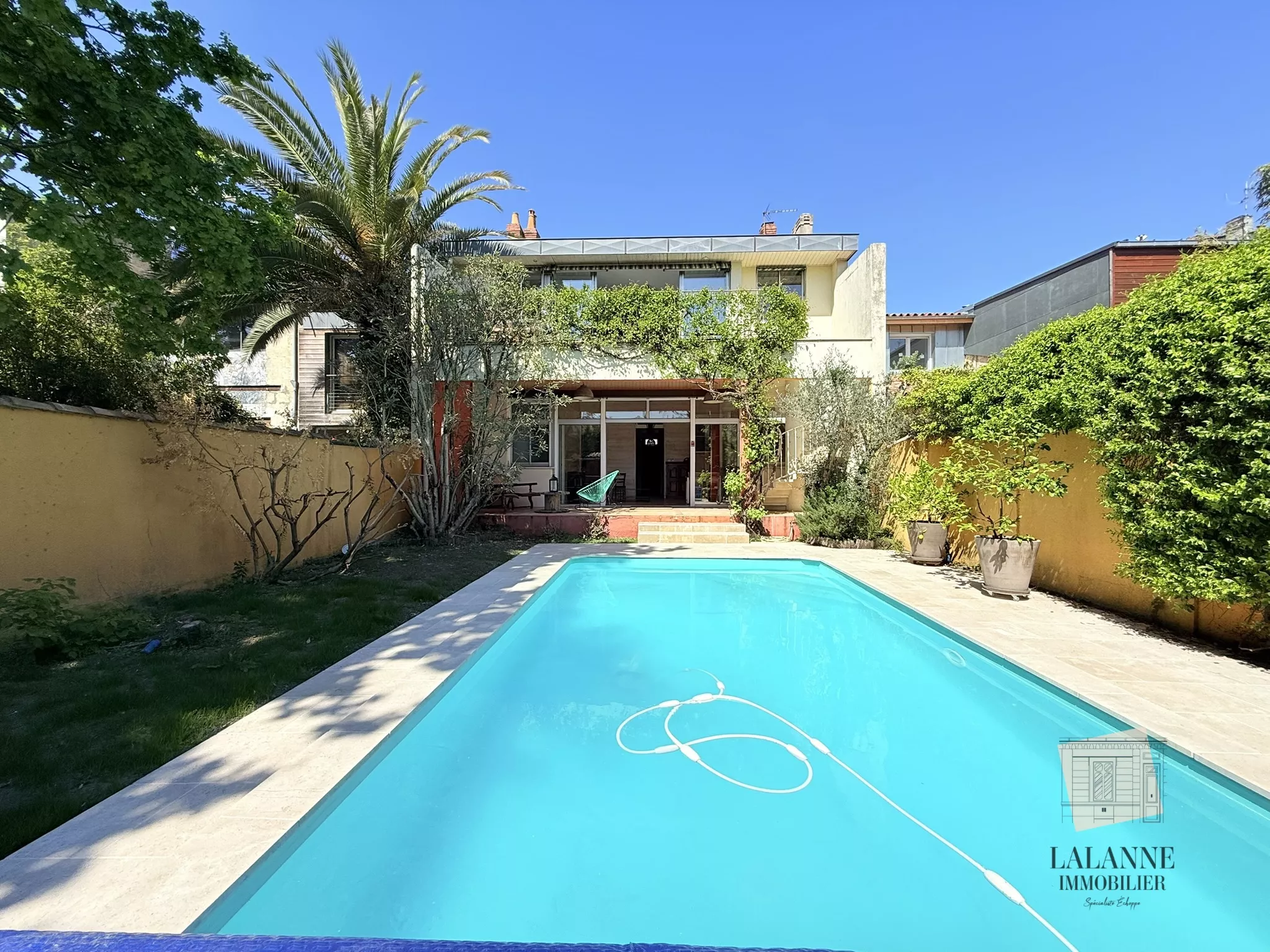Le rez-de-chaussée propose un premier espace particulièrement fonctionnel, avec quatre chambres, une salle d'eau, des toilettes, ainsi qu'un salon avec cuisine ouvrant sur une terrasse abritée tournée vers le jardin arrière. Sans vis-à-vis et entouré de végétation, ce jardin accueille une piscine chauffée, idéale pour profiter d'un extérieur intime en plein Bordeaux. Une dépendance en fond de parcelle complète l'ensemble, très utile au quotidien pour du rangement, un atelier, les vélos ou un espace dédié selon vos besoins.